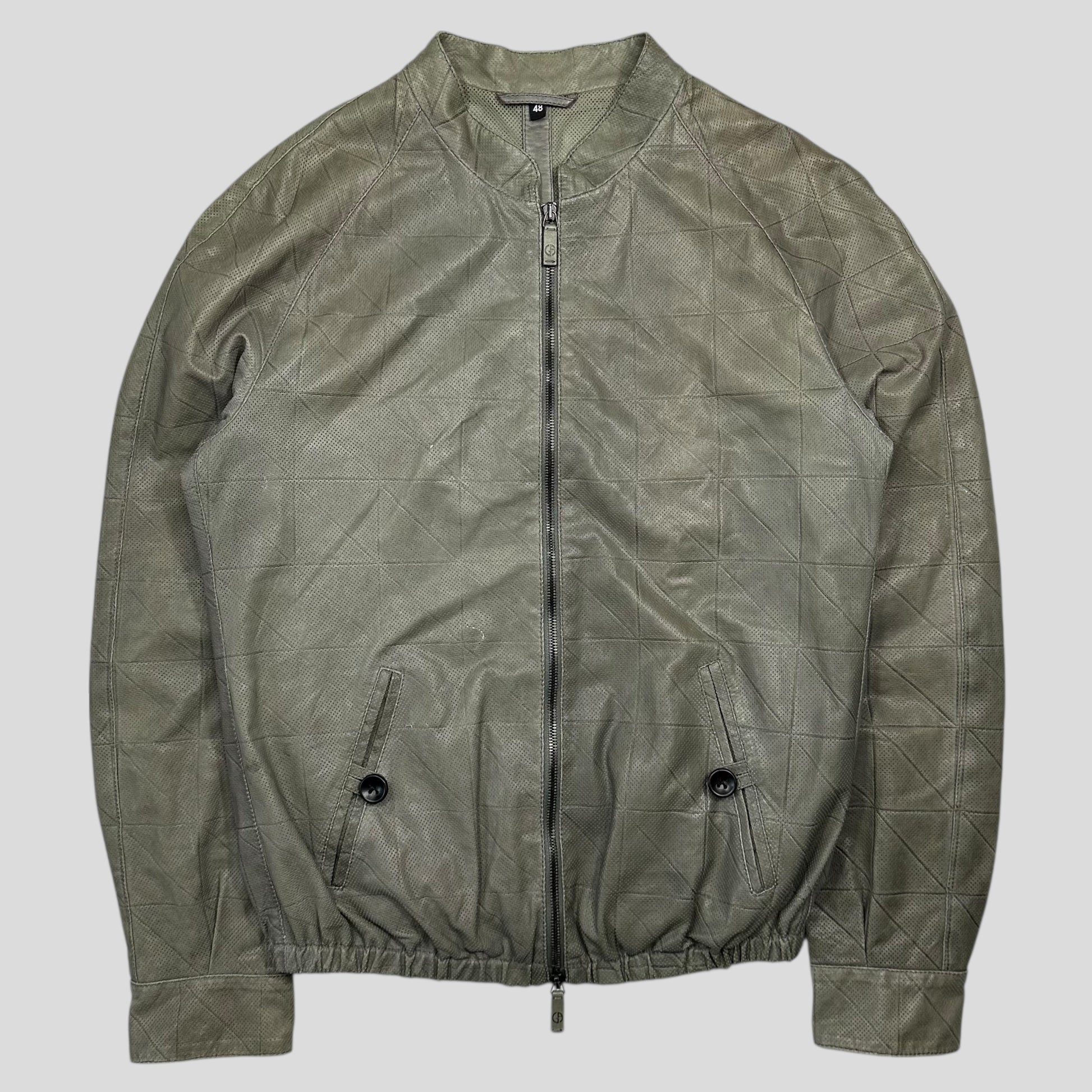 Giorgio Armani 2010 Perforated Leather Grid Bomber Jacket - IT48 (M)