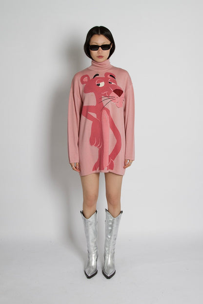 Hight Neck Long Wool Top / Dress Iconic Pink Panther Character Design.
