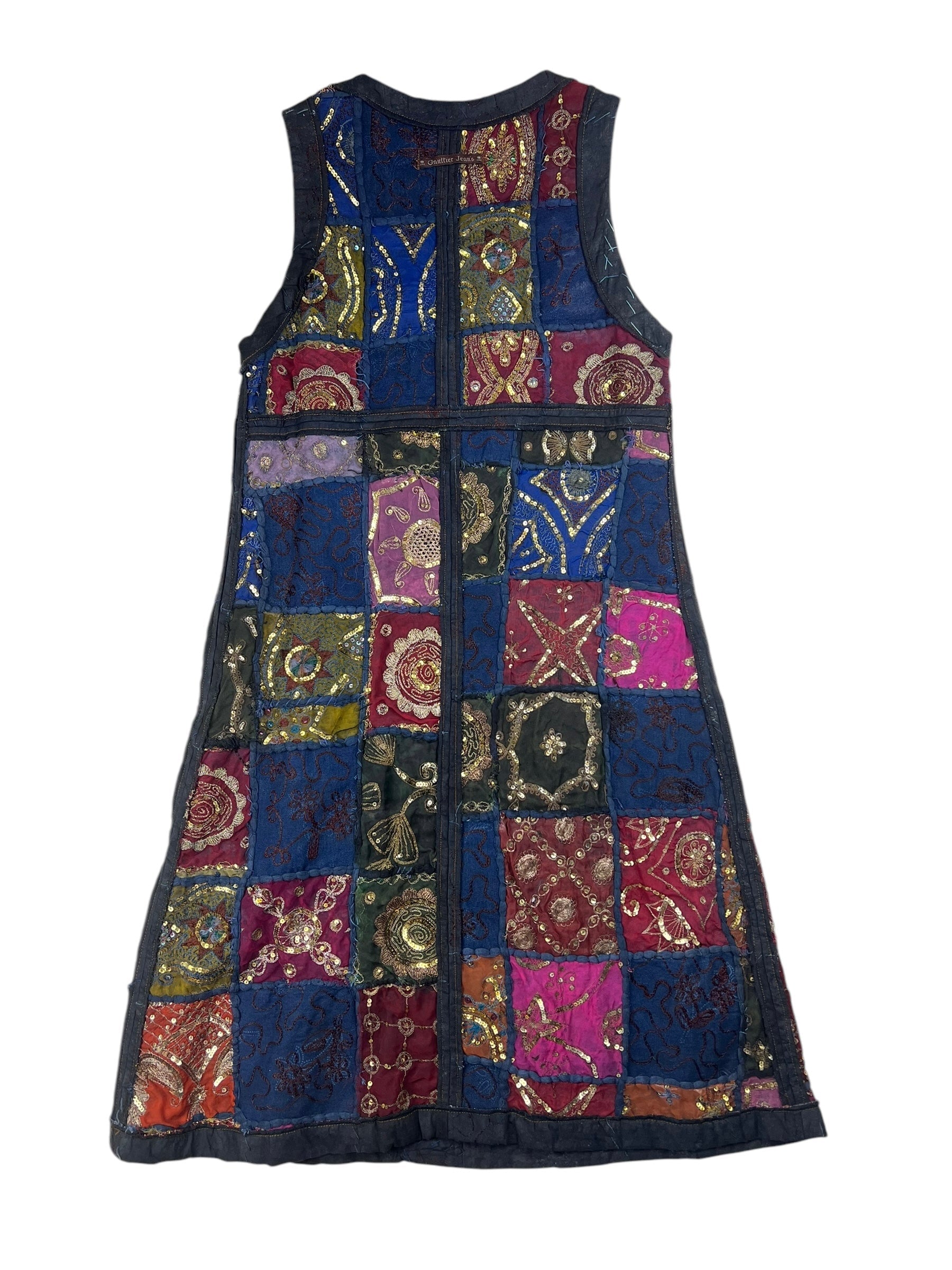 Jean Paul Gaultier S/S 1999 patchwork dress embellished with sequins and metallic thread. Black cotton base that’s faded beautifully with age. It’s semi-quilted so nice and thick for autumn-winter wear. Size M / UK12. All details below👇