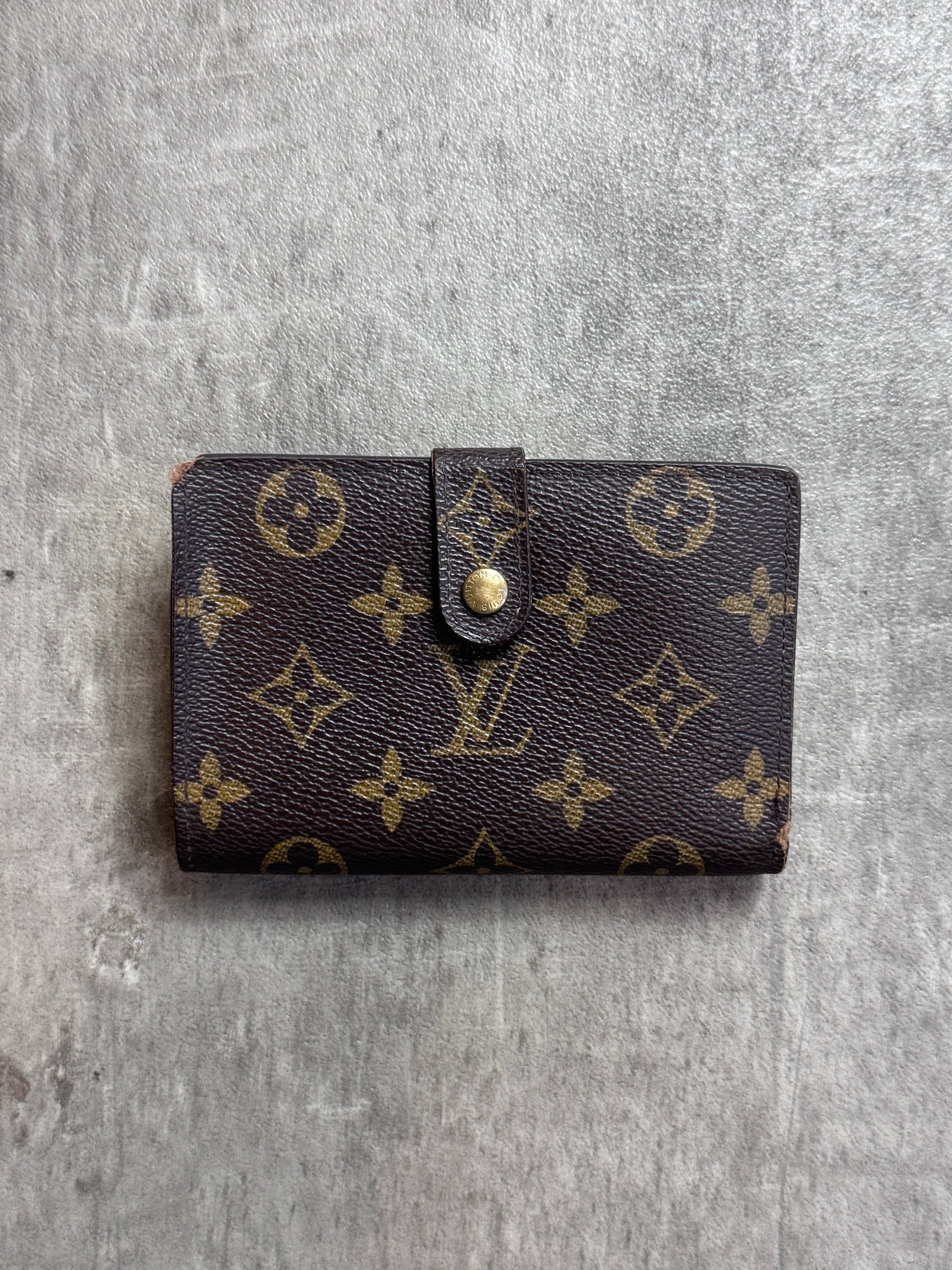 Finished with gold-tone hardware and a secure snap-button closure, this timeless piece is ideal for everyday use and slips easily into pockets or small bags.