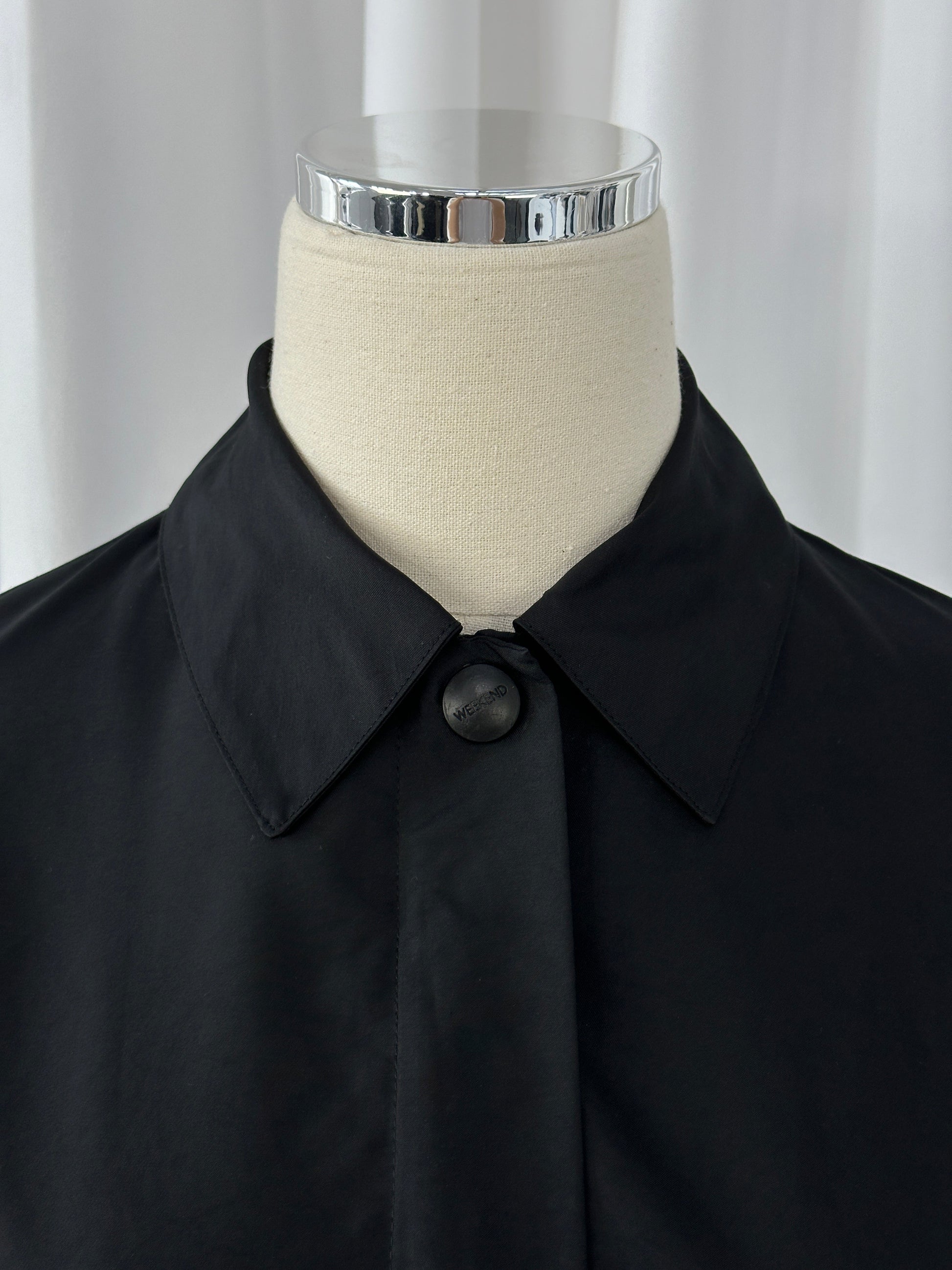 A refined Weekend by Max Mara 2000s black nylon jacket with clean concealed fastening and subtle logo buttons.