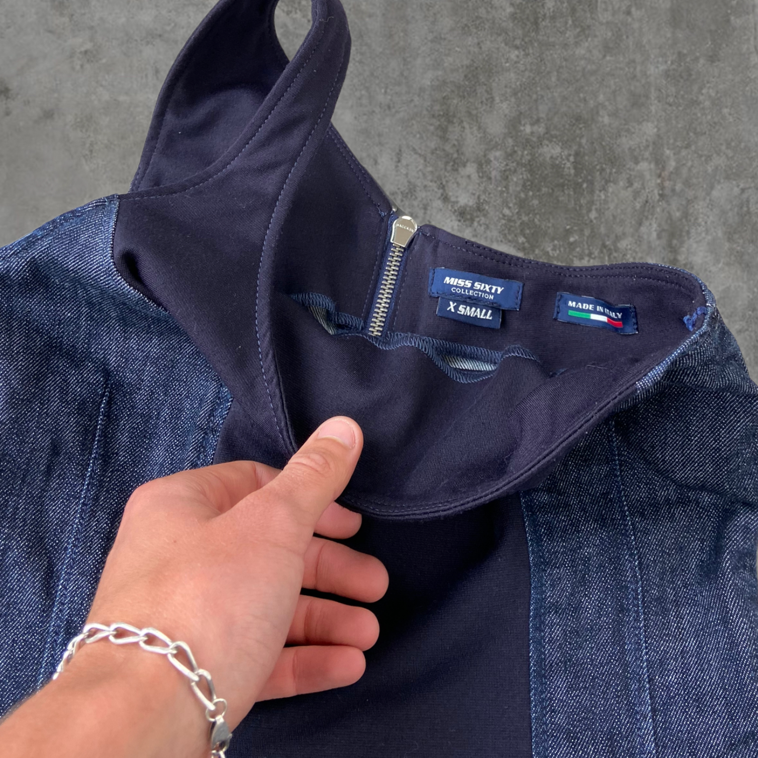 MISS SIXTY ASYMMETRIC DENIM DRESS - XS