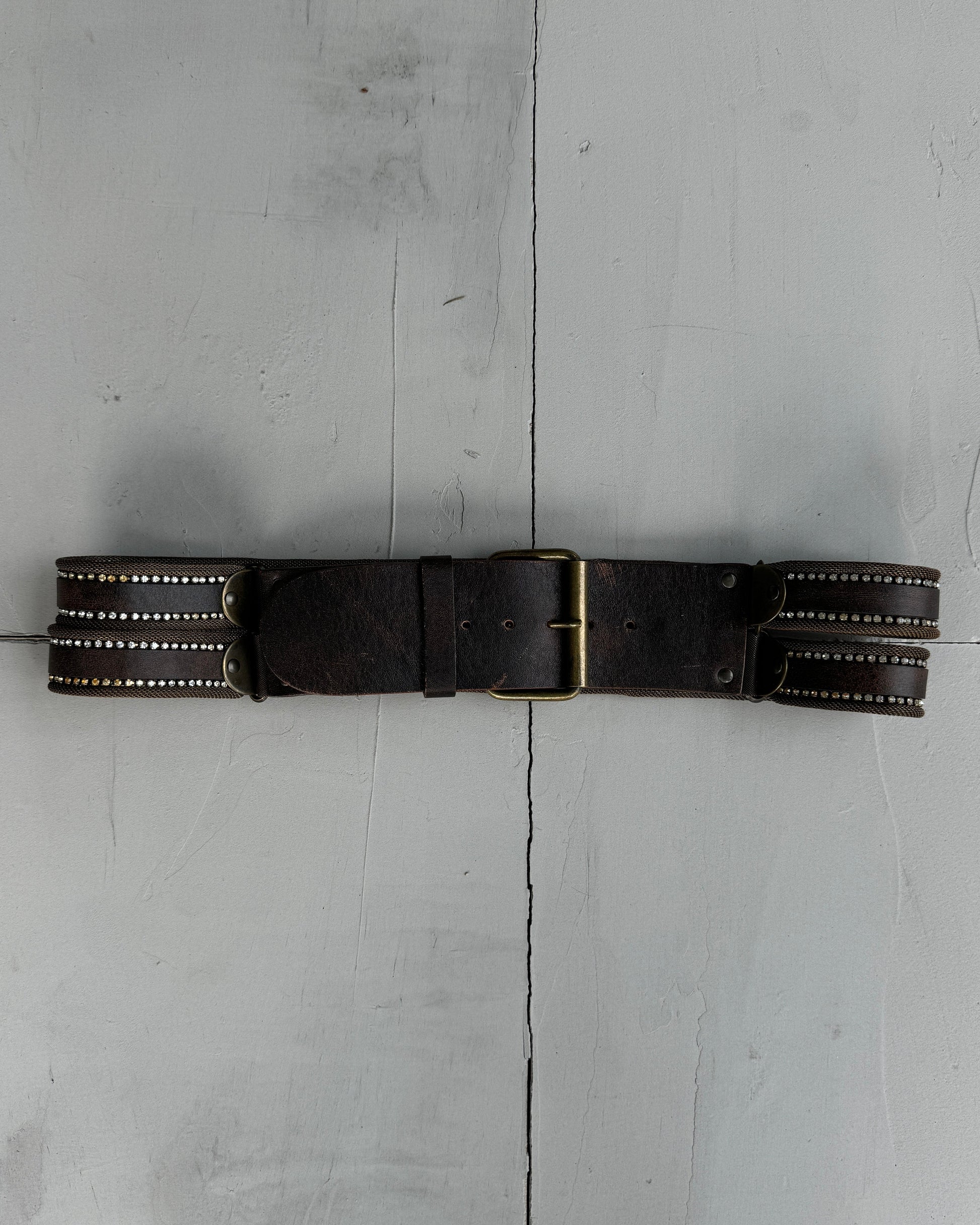 Nanni Double Layered Studded Leather & Mesh Belt.