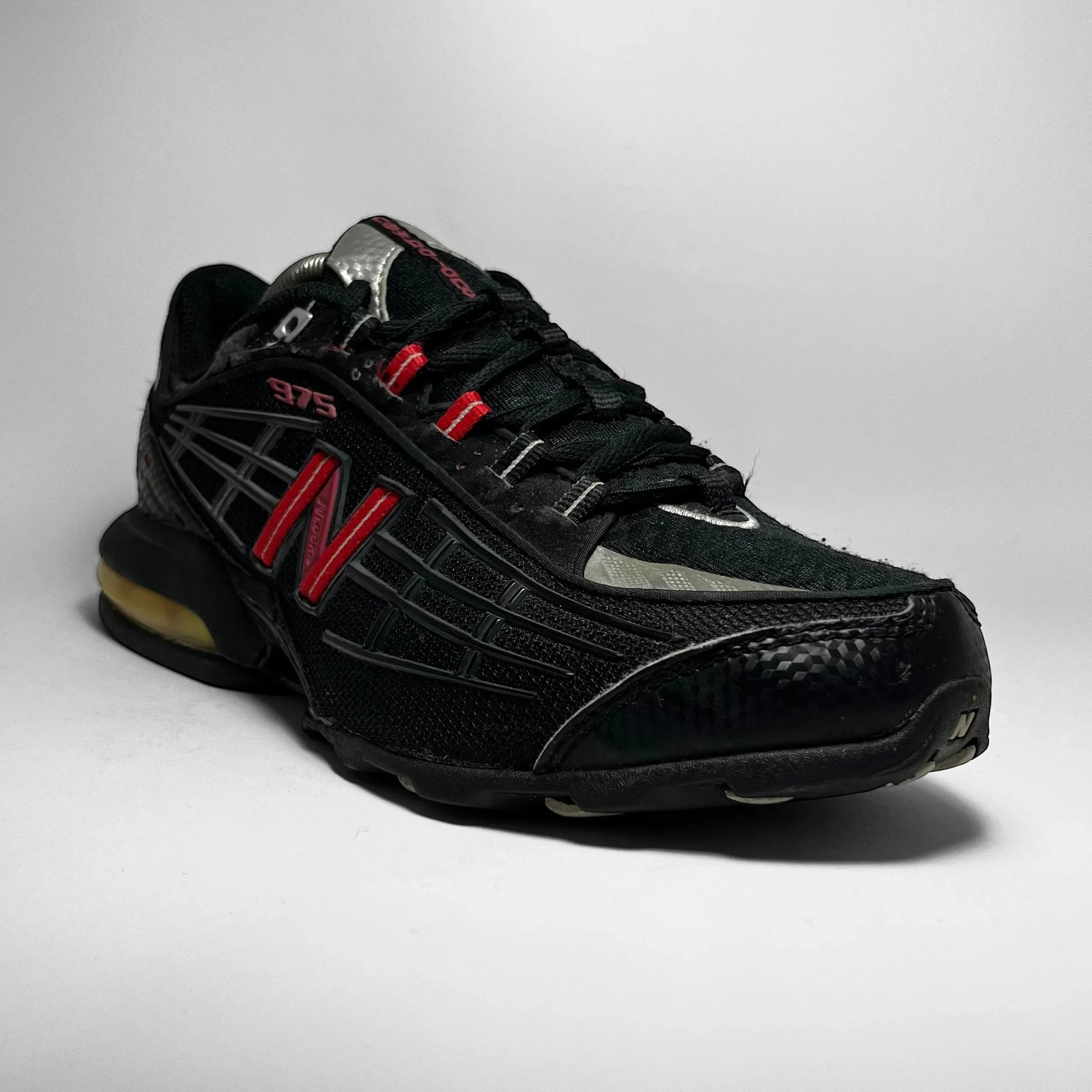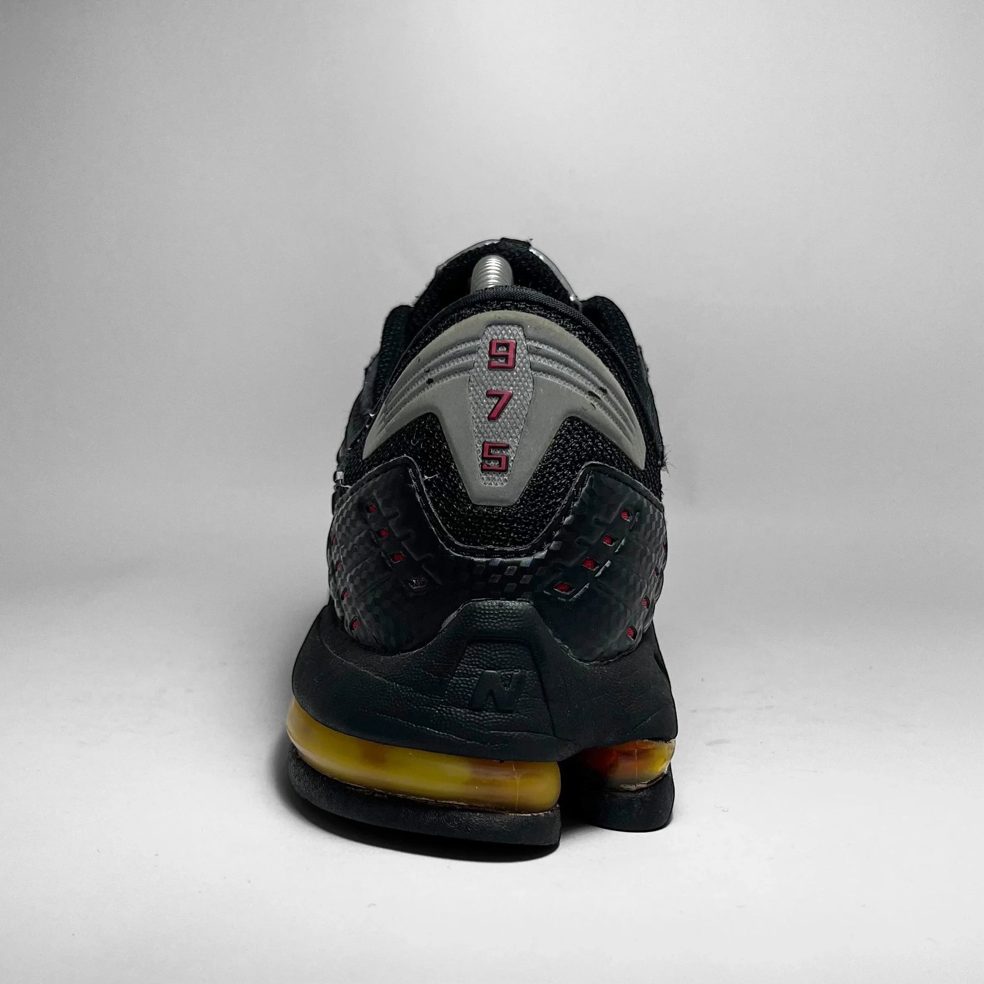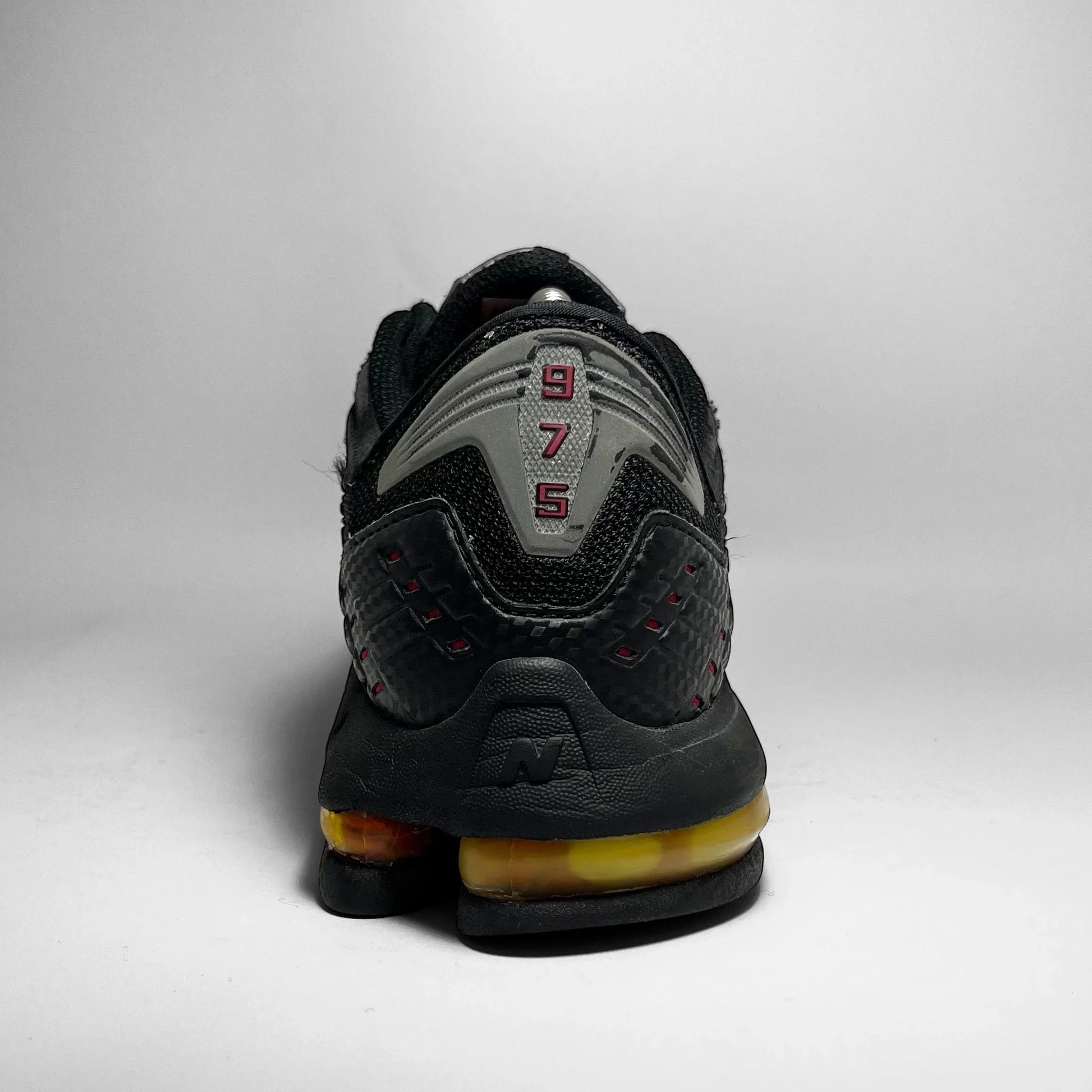 It’s like looking at a motor/dirtbike. Mesh underlay in several forms stacked with rubber striking parts, leather panels with carbon prints in silver and black throughout, nubuck collar, hints of 3M and tones of red like eyelets, woven cotton NB logo and perforations at heel, unique ‘air-units’ system at rear, which is super rare for NBs in general.