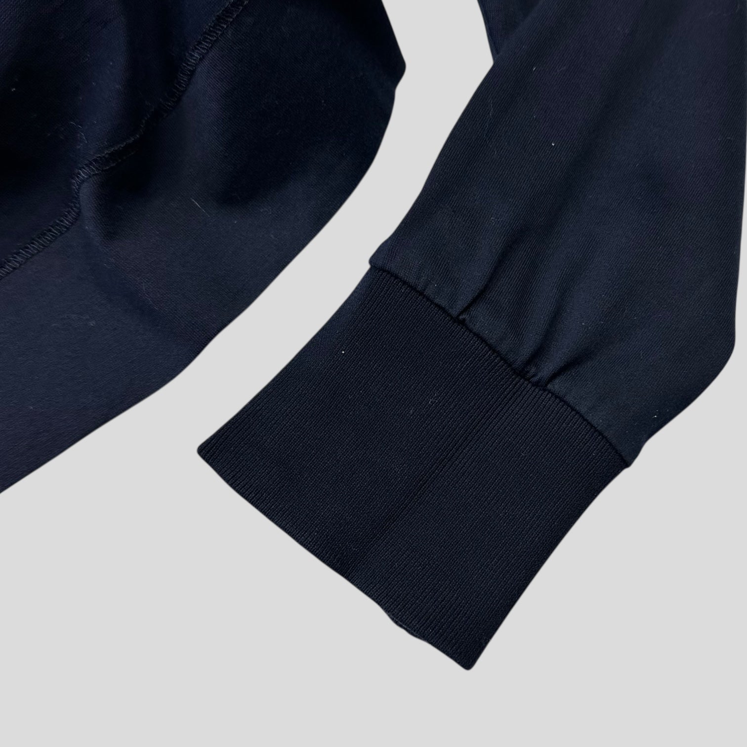 Lovely 2018 mainline Prada Milano 2018 dark navy longsleeve lightweight jumper with mockneck and ribbed cuffs, rubber triangle chest logo hit in a nice colour palette.