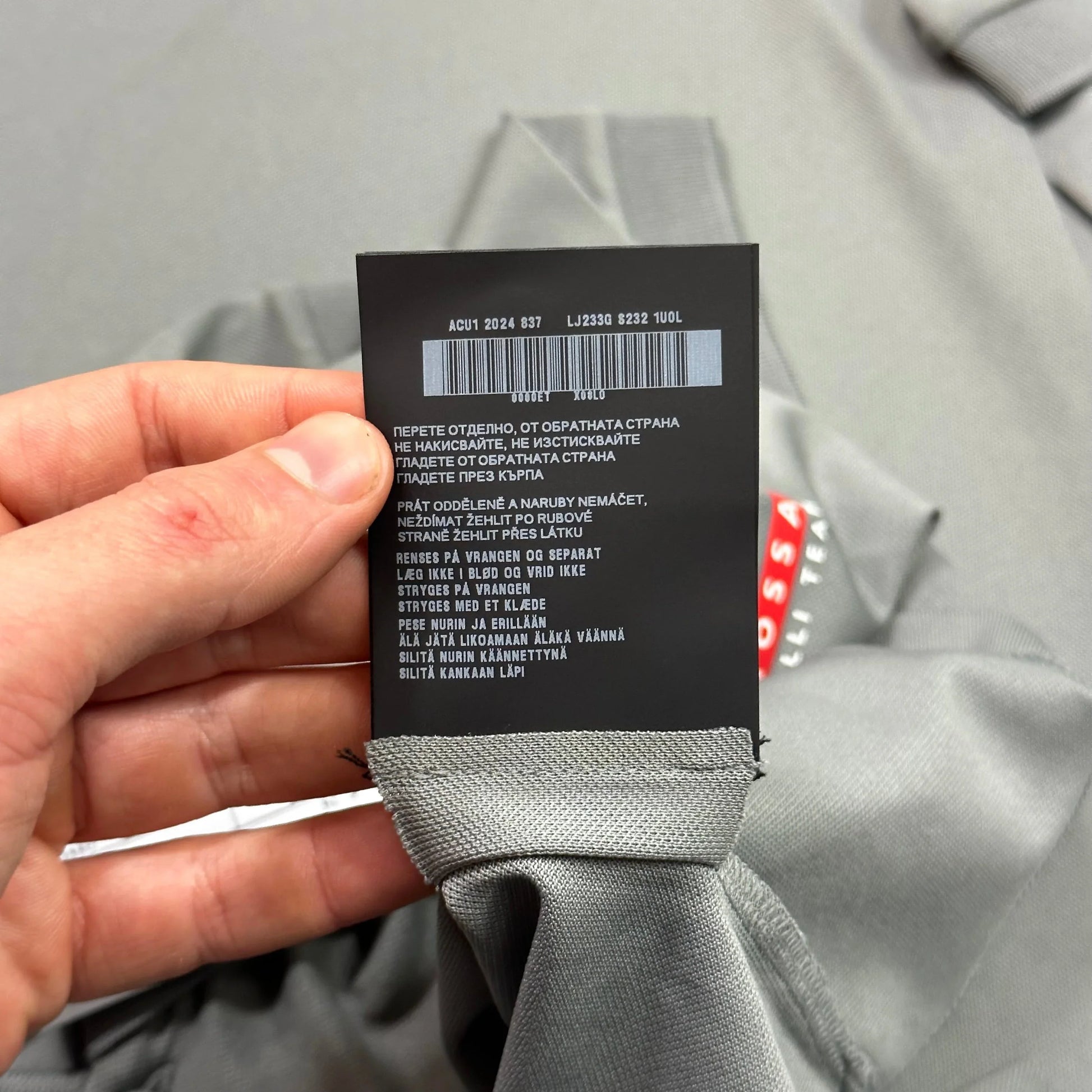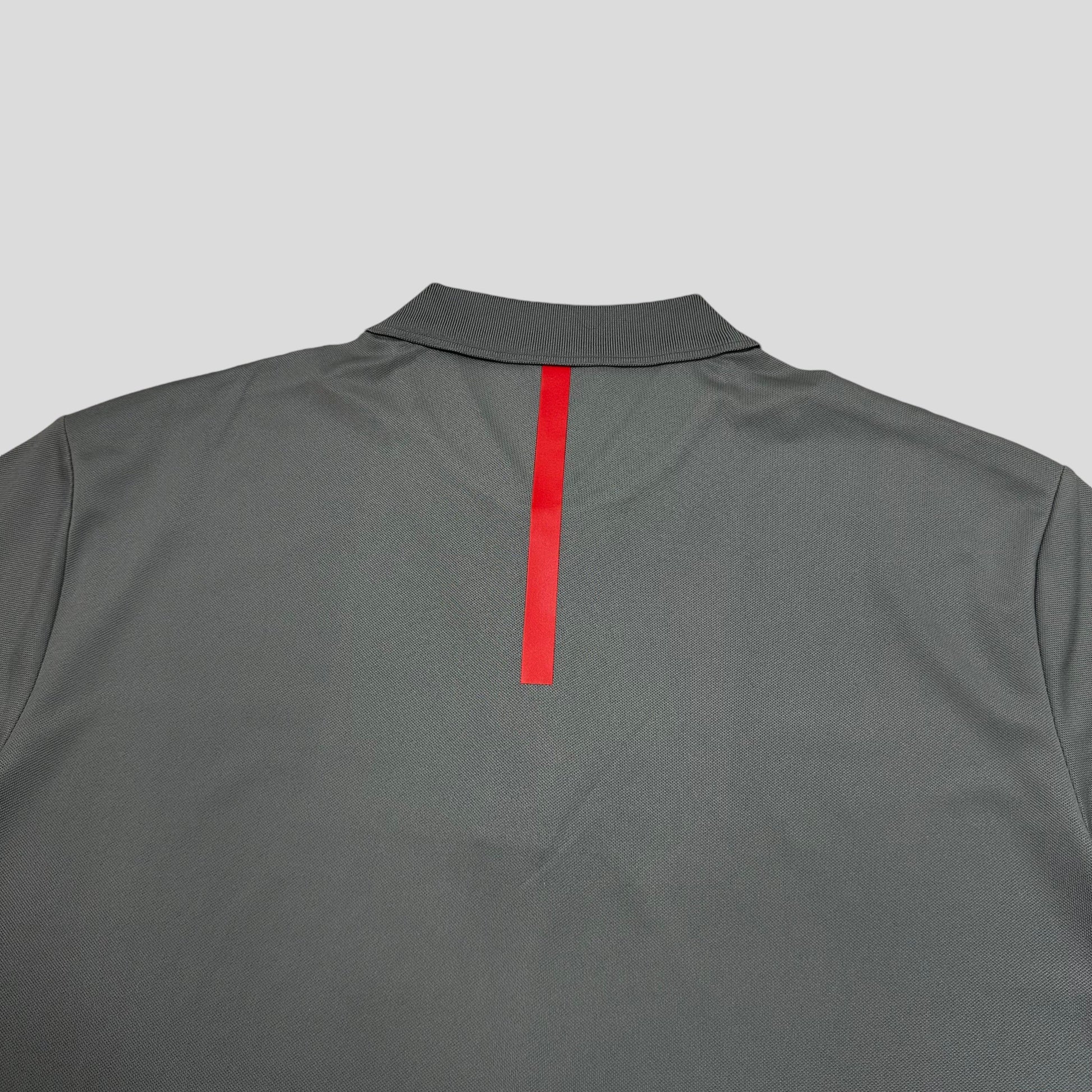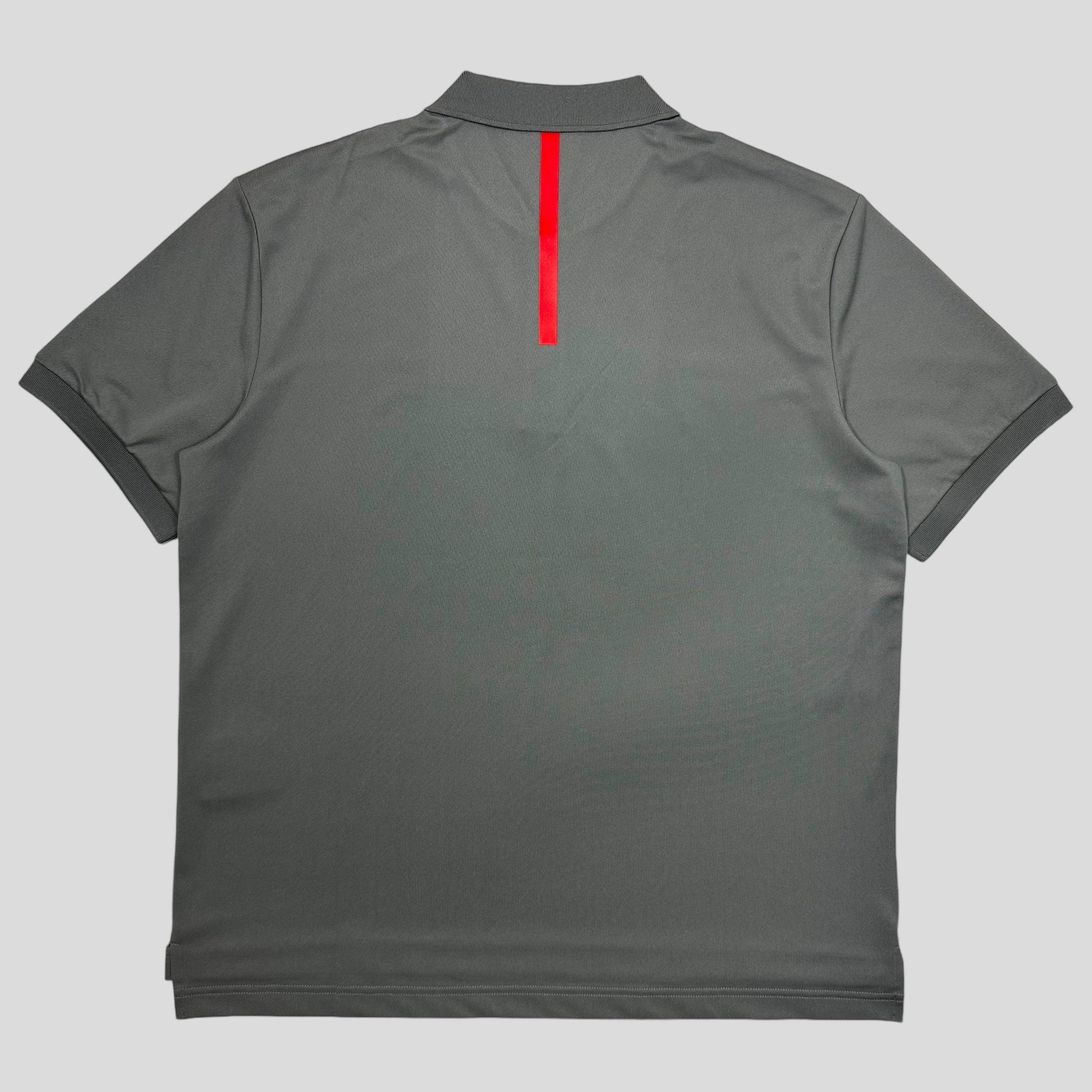 Brand new with tags Prada Americas Cup technical grey pique polo with Luna Rossa red stripe logo tabs and perelli branding.