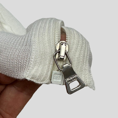 Unique white / cream women’s 2008 Prada Sport vest top, constructed from a light cotton knit material with a zip up front and the Prada metal zipper and a unique cut and style.