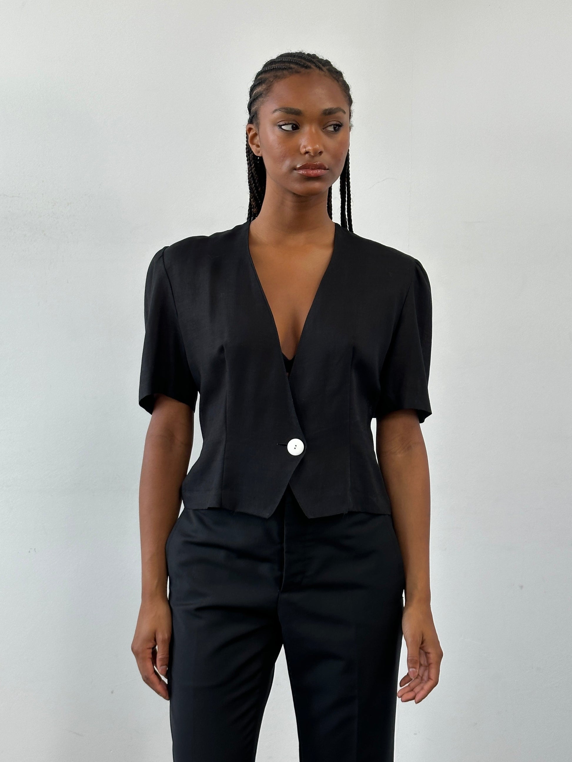 St Michael 1987 Cropped Short Sleeve Blazer - M