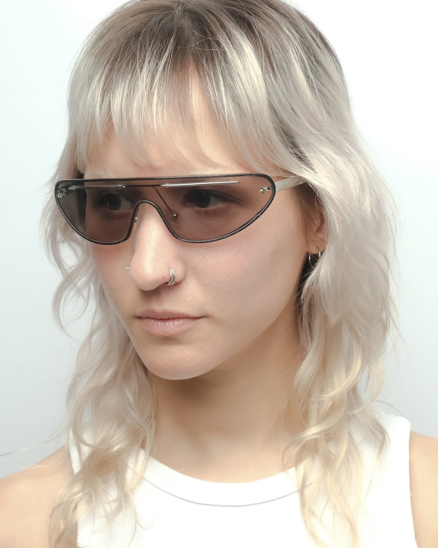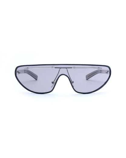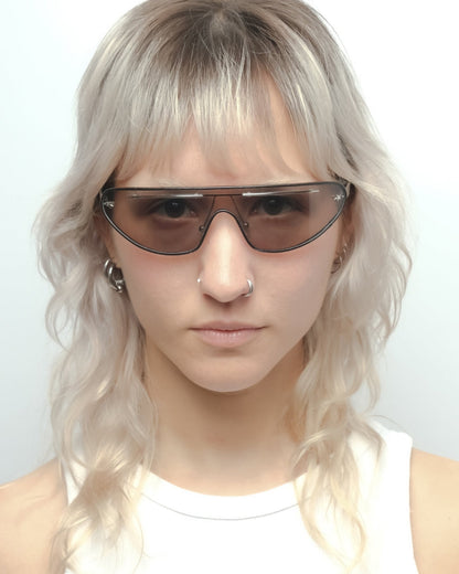 Early 2000s mask with leather contour around the lens and silver details. First sunglasses line of the brand. Condition 10/10: New old stock. Comes with its original case, dust cloth, and box.