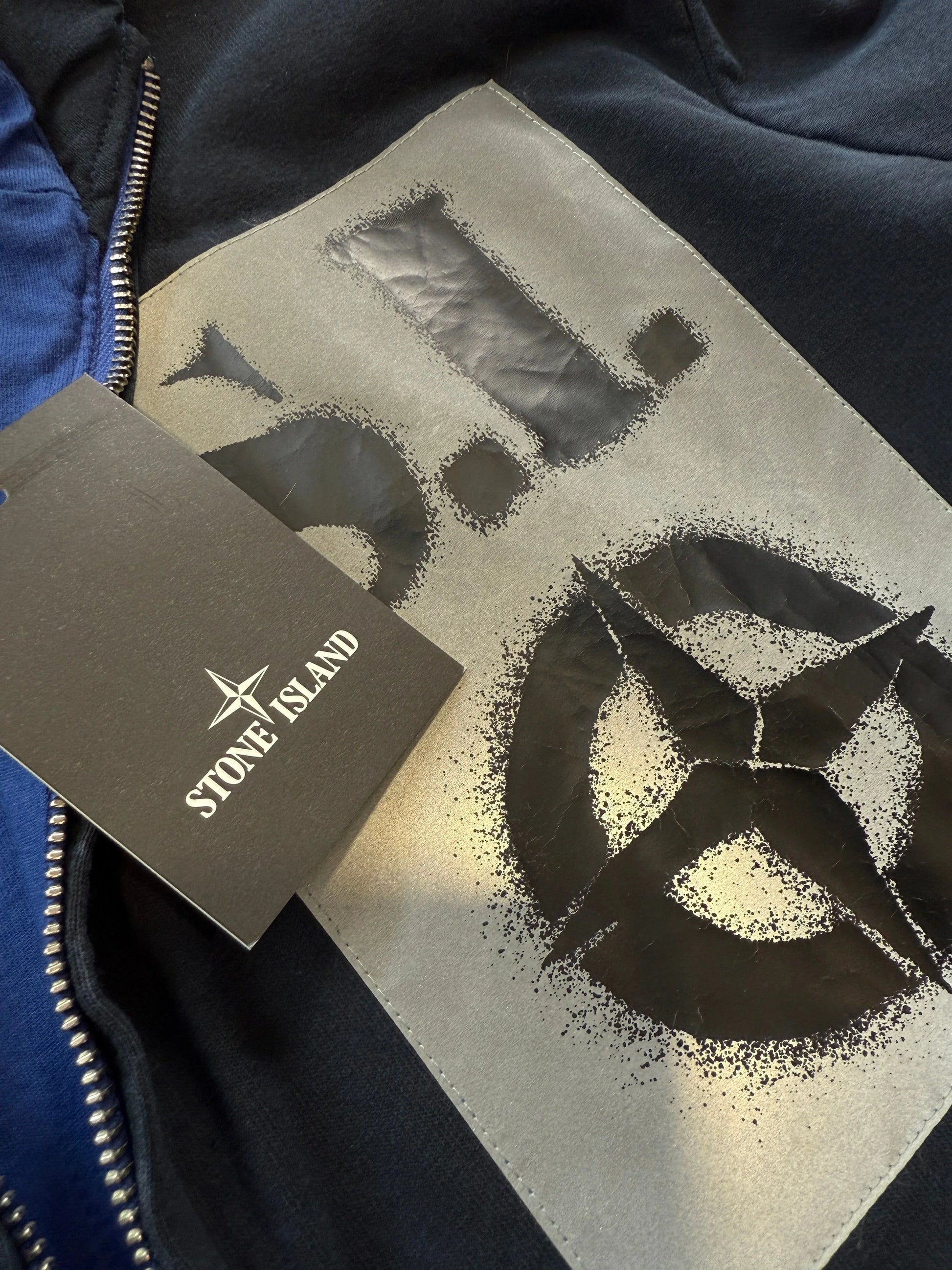Stone Island SS/06 Reflective Logo Zip Up Hoodie L BNWT