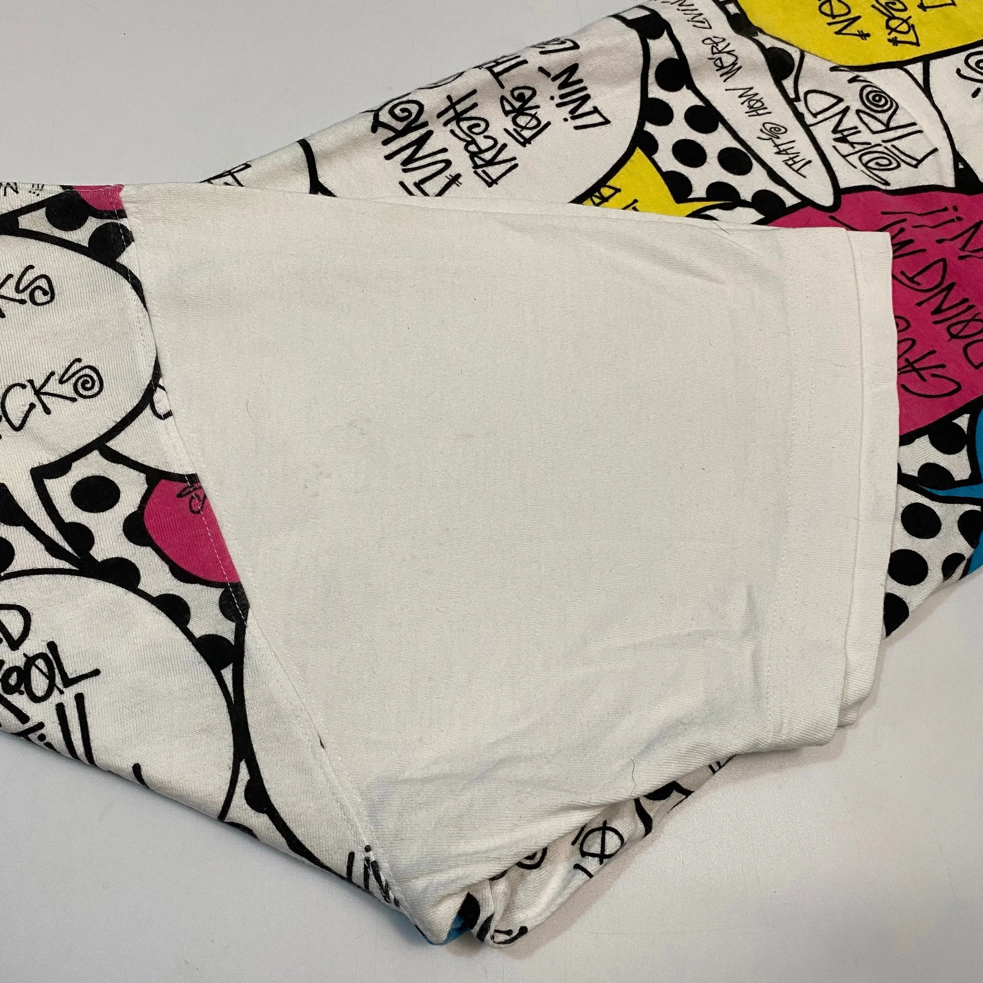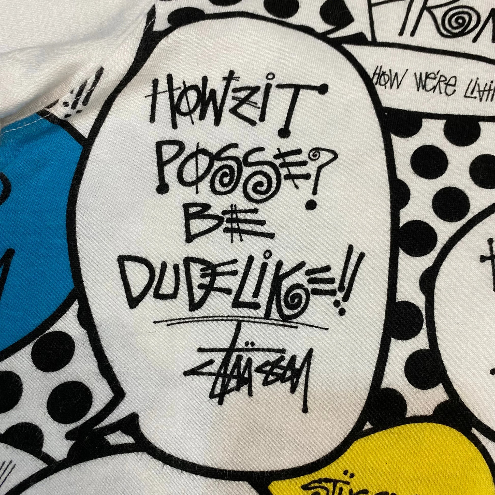 Rare 00’s Stussy graphic T-shirt, all over multicoloured speech bubble print with Stussy logo’s and slogans throughout. Stussy tab on the side. Matching shorts also available on my page.