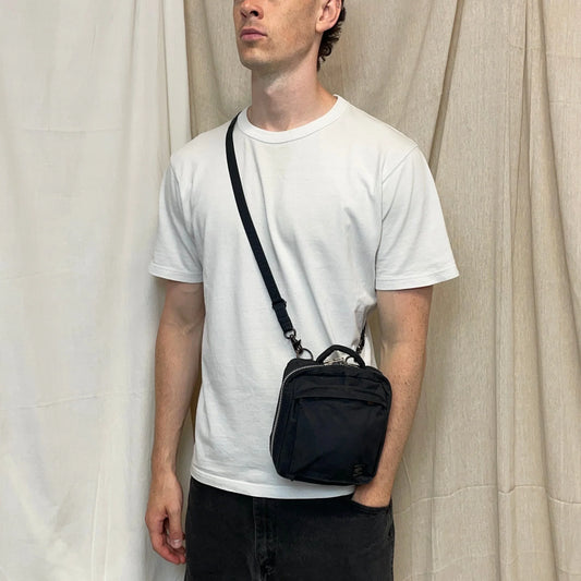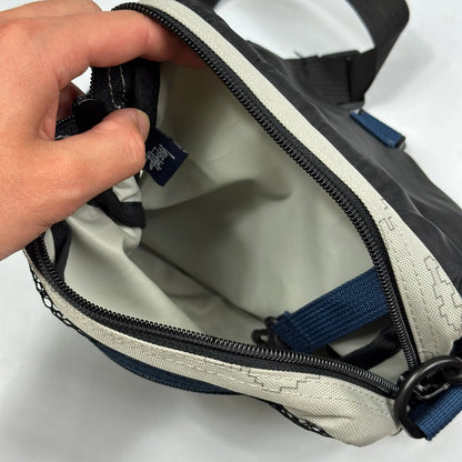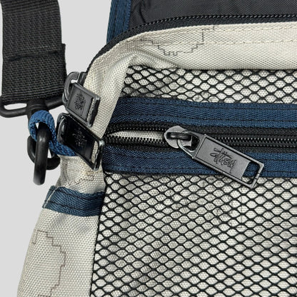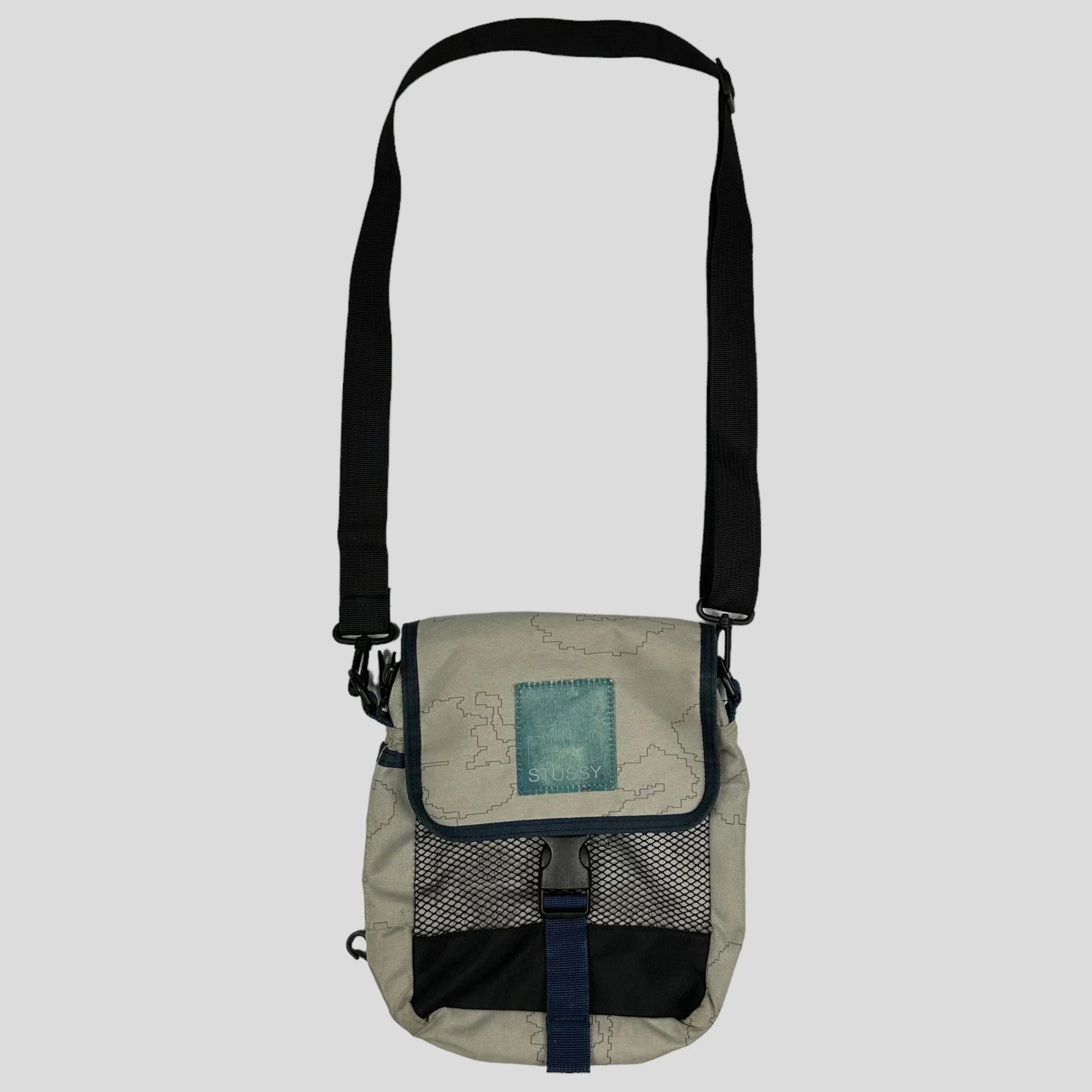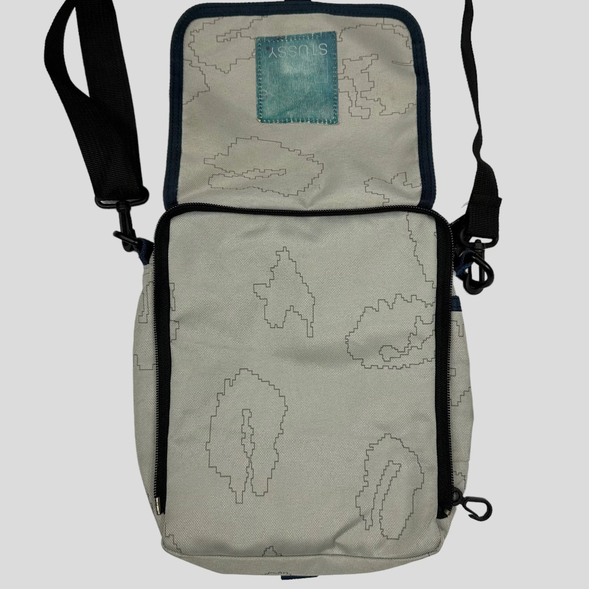 Rare Stussy late 90’s digital camo crossbody bag, multipocket utility design with a mesh storage compartment and two pen slots, carabiner in main compartment, embroidered Stussy patch on the front.