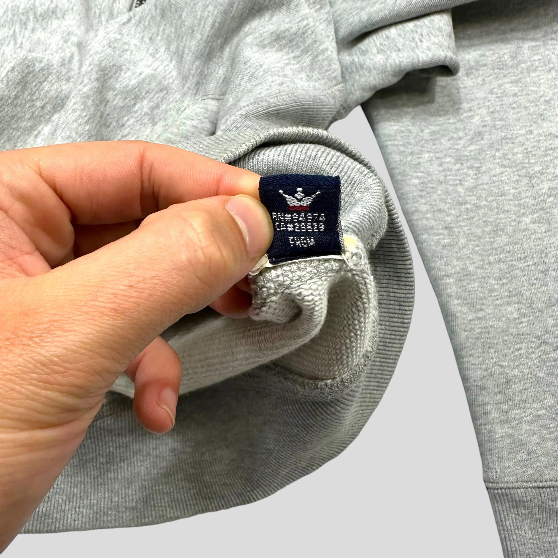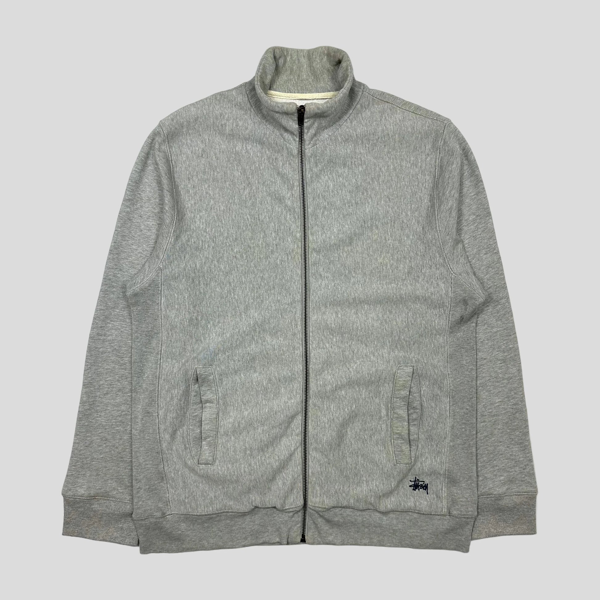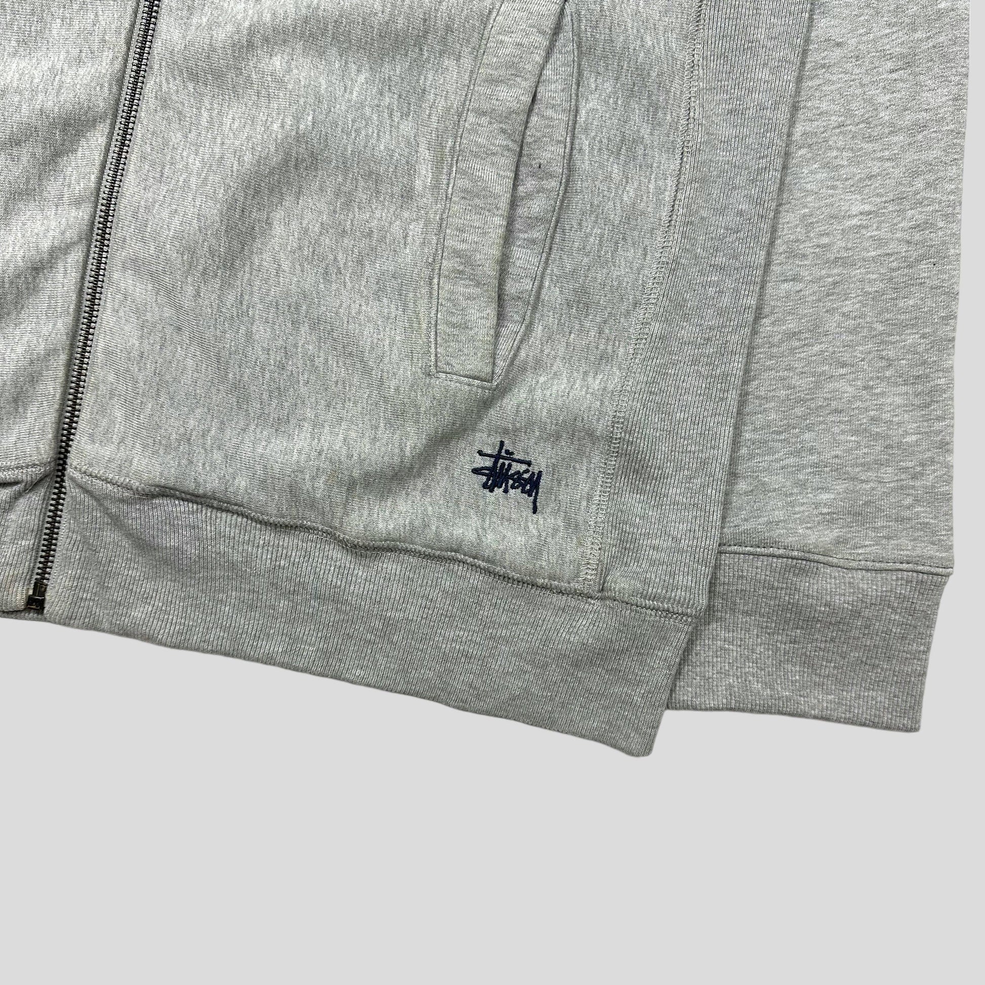 Rare 1990’s Stussy grey zip-up cotton jacket / cardigan, nice hoodie style cotton with an embroidered navy stock logo to the lower right.