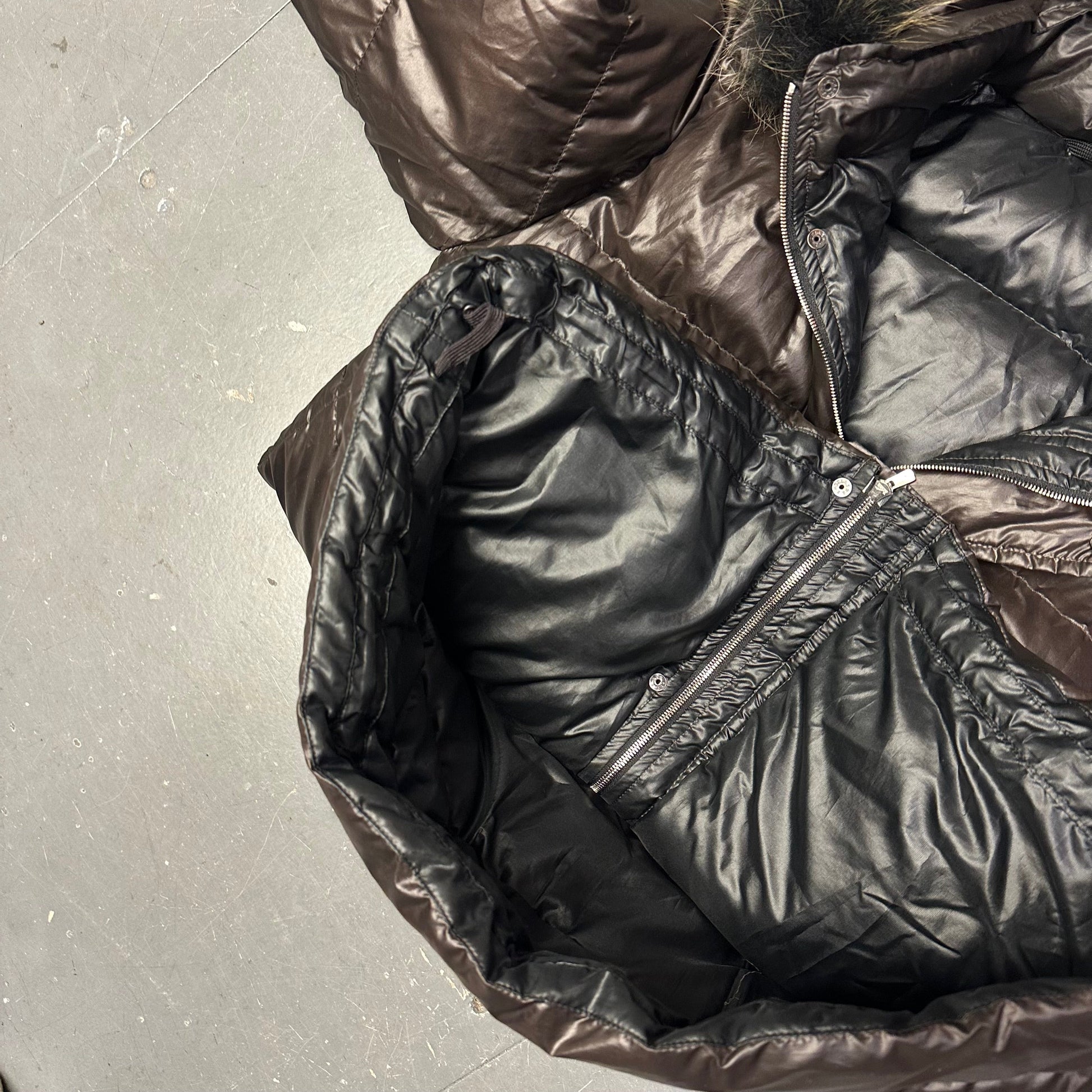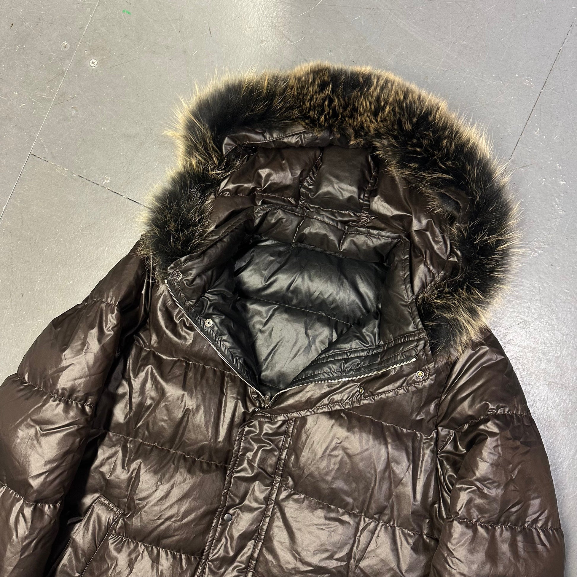 Takeo Kikuchi Puffer Jacket With Fur Hood In Brown ( L )