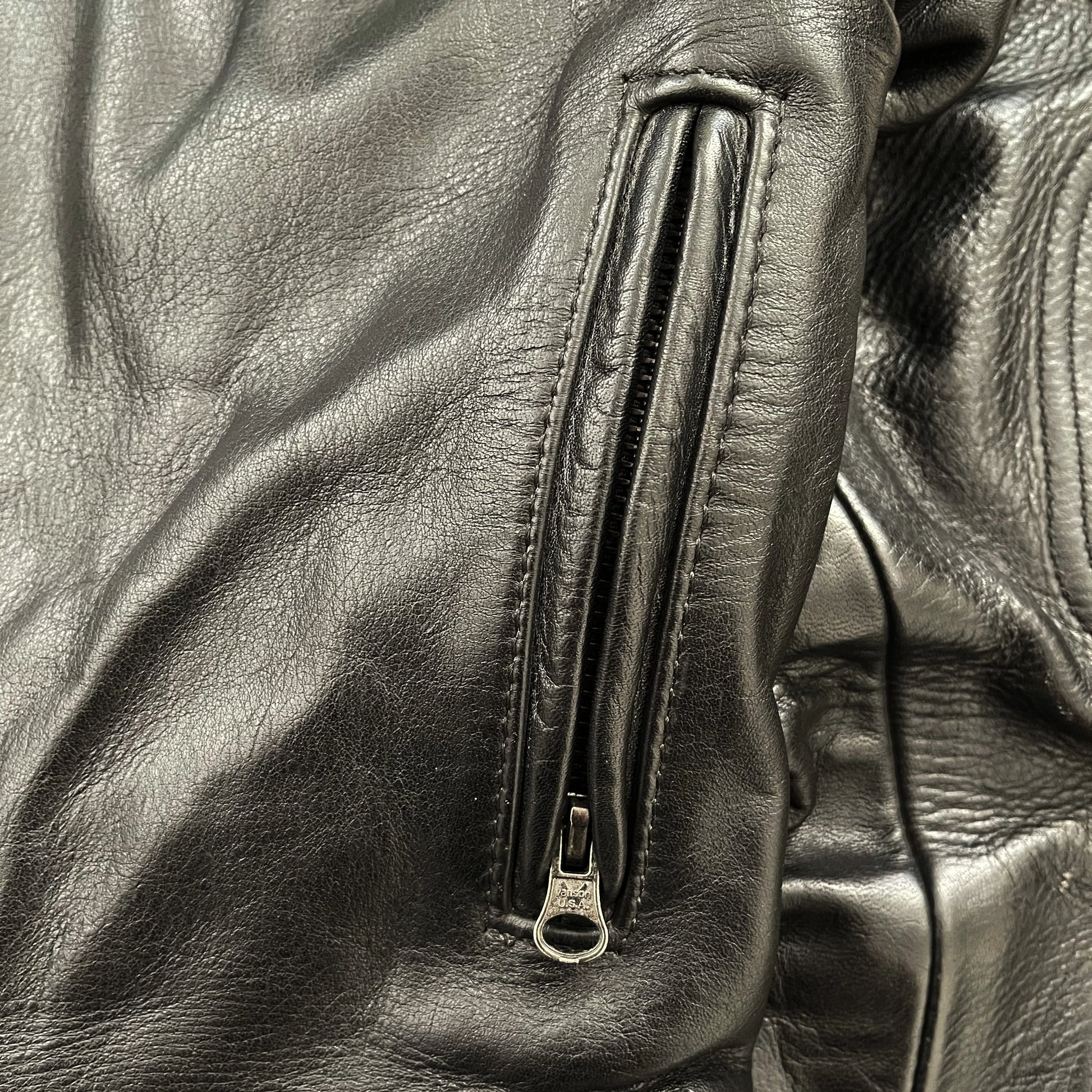 • Vanson Leathers patches sewn onto the arms