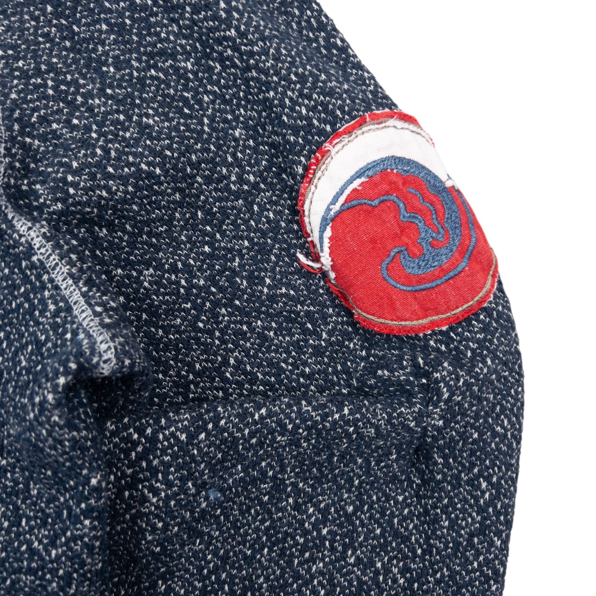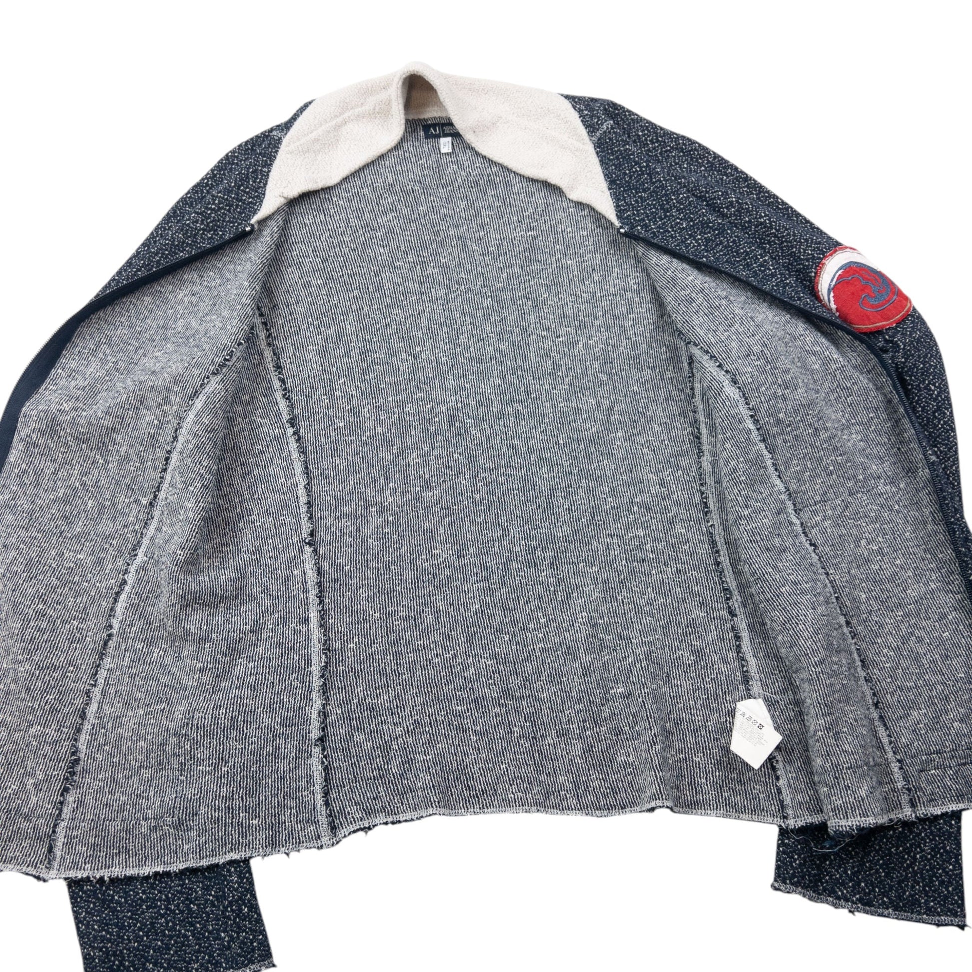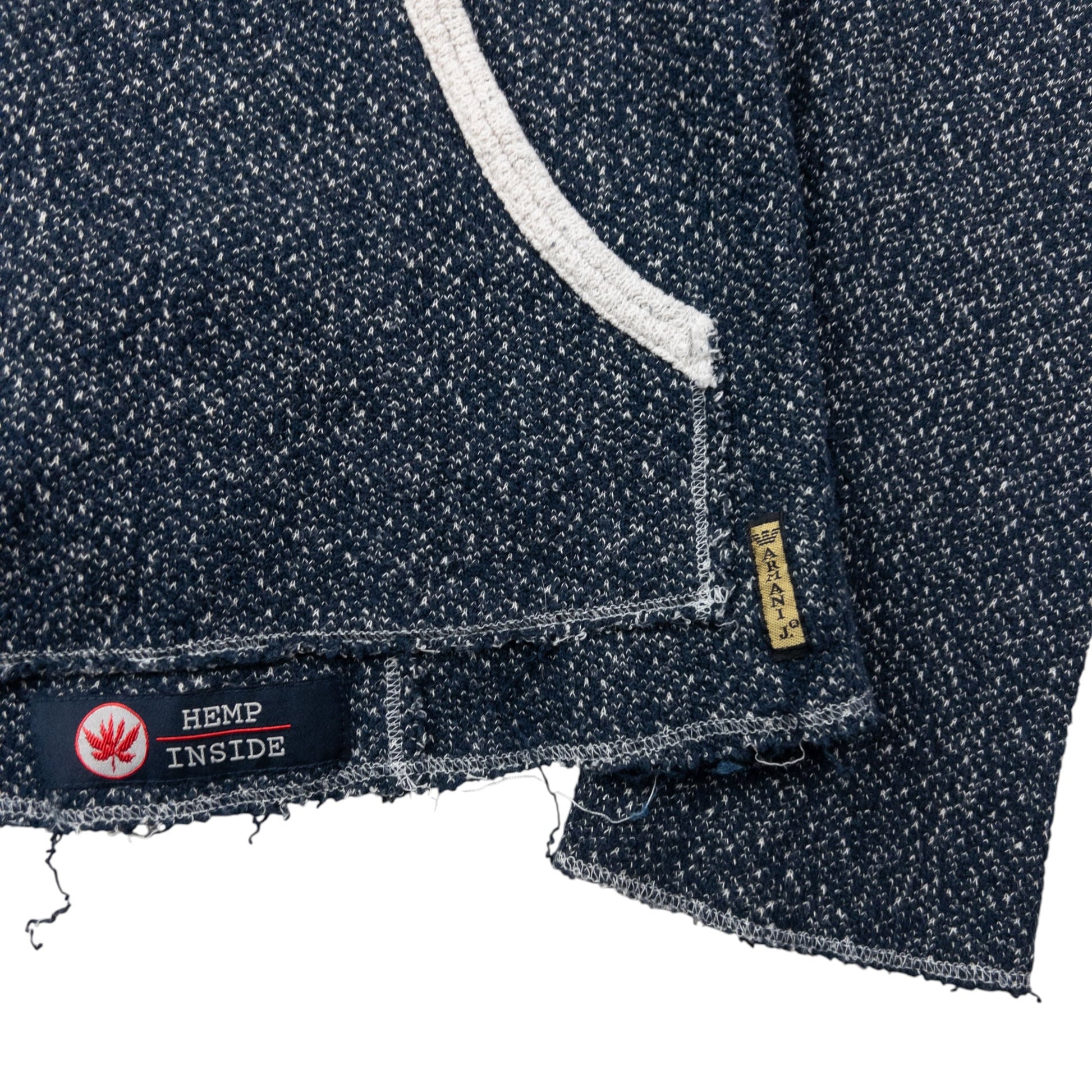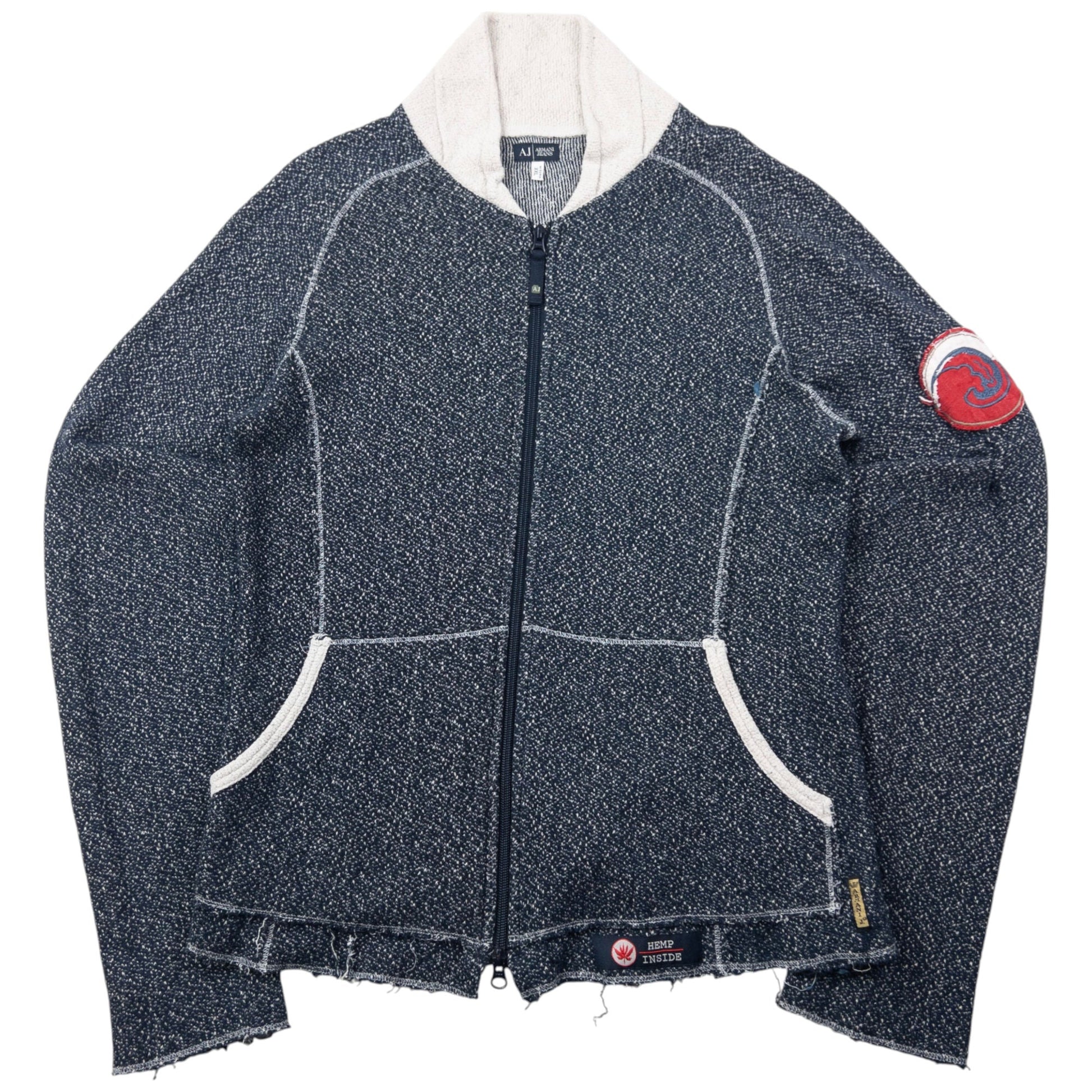 • Other info: Navy colour, white contrast colour, raw-edge detail, sleeve applique, hemp inside, minor general wear as seen.