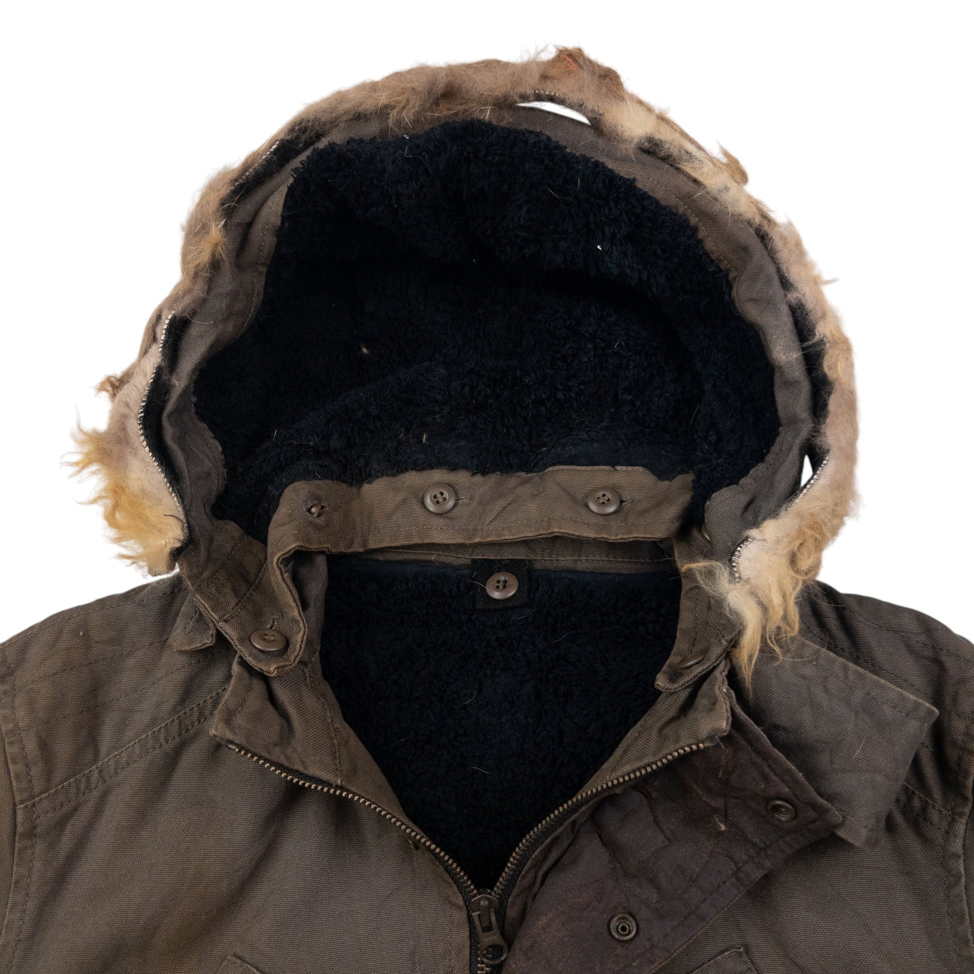 • Other info: Khaki colour, fleece layered lining, removable fur hood trim, adjustable drawstring, marks and wear as seen
