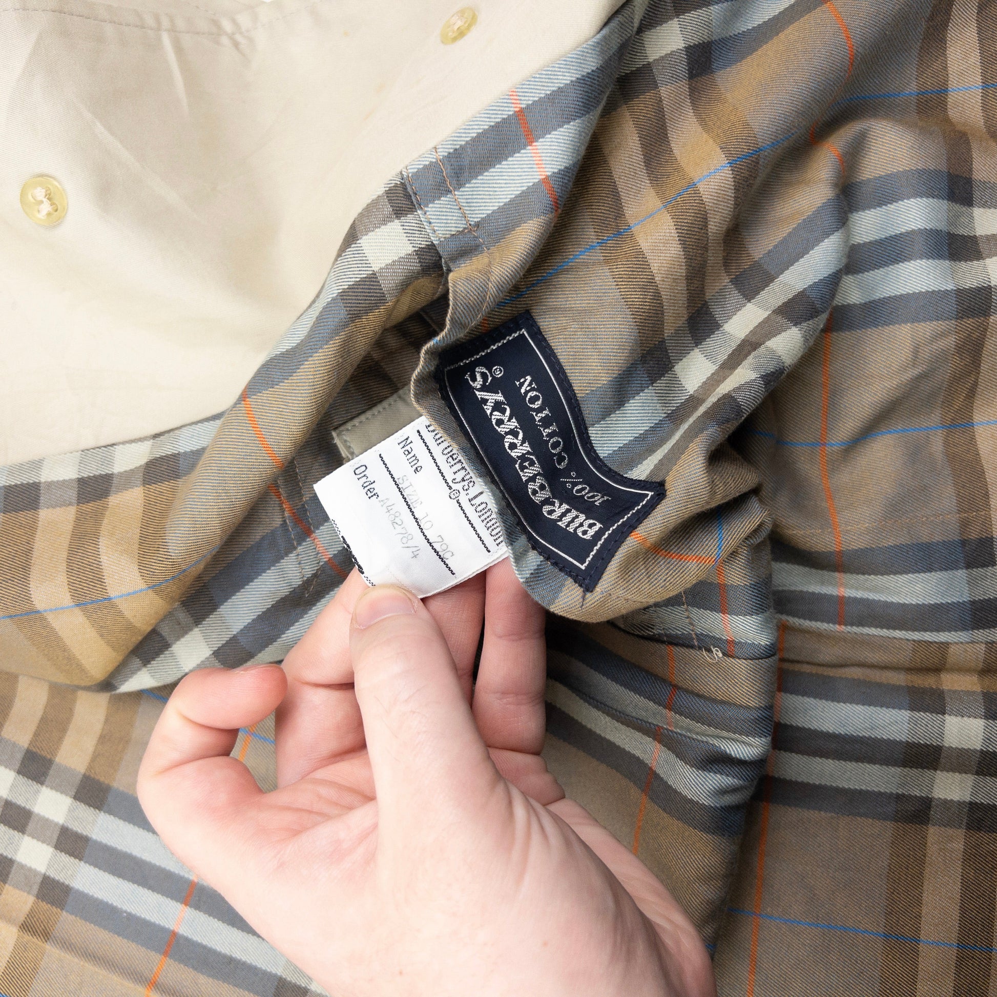 • Other info: Beige colour, nova check pattern lining, damaged buttons and wear as shown, some marks as seen