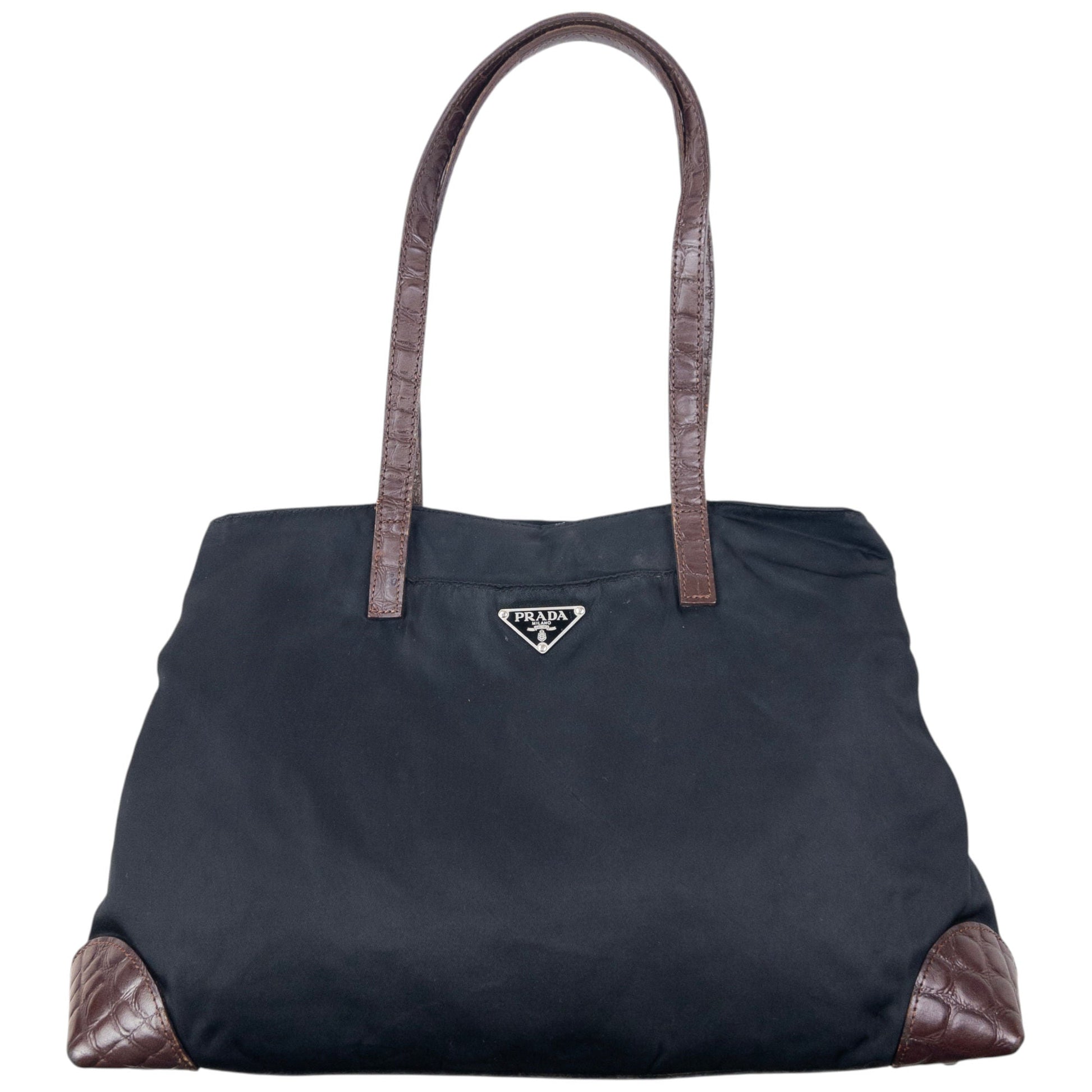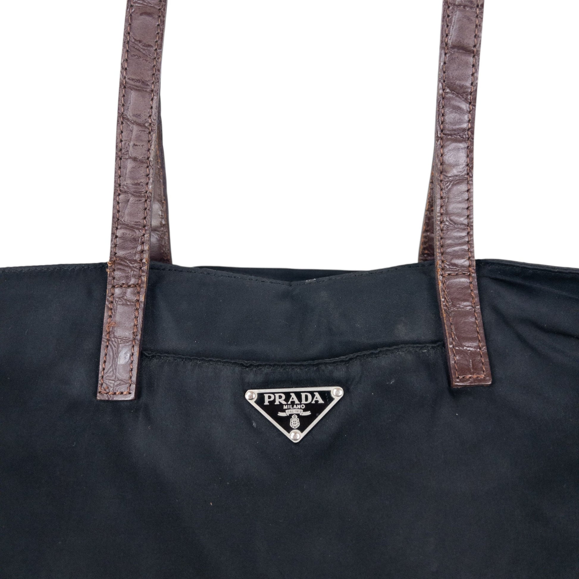 • Other info: Black colour, brown contrast colour, crocodile texture leather, prada symbole plate detail, minor marks and general wear as shown