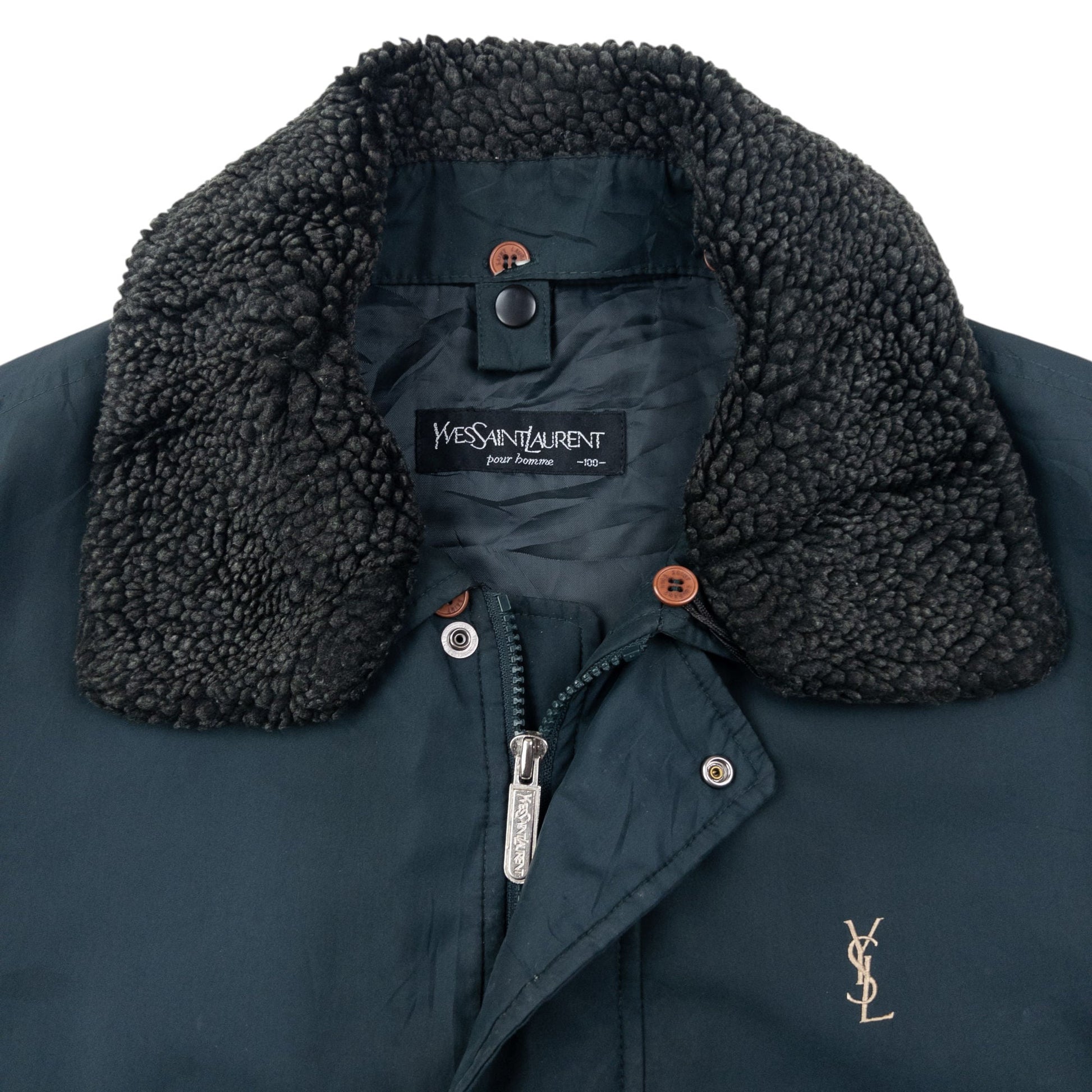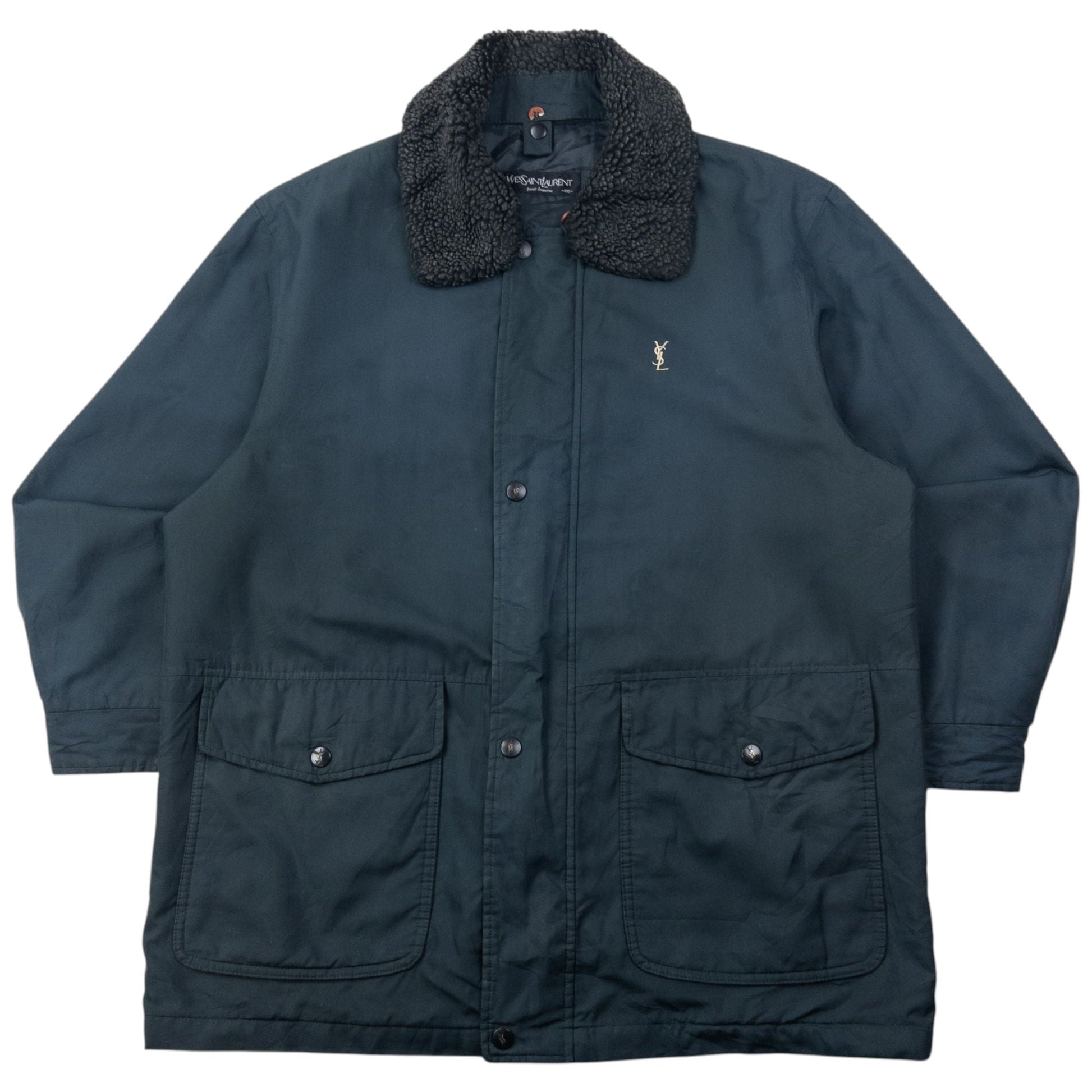Vintage 90s YSL Yves Saint Laurent Fleece Collar Jacket Size L