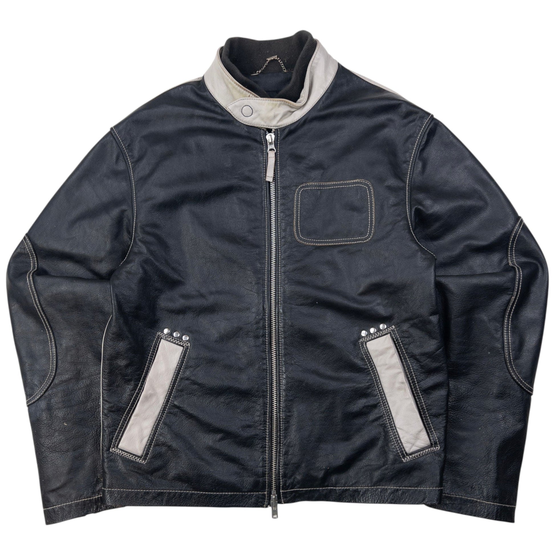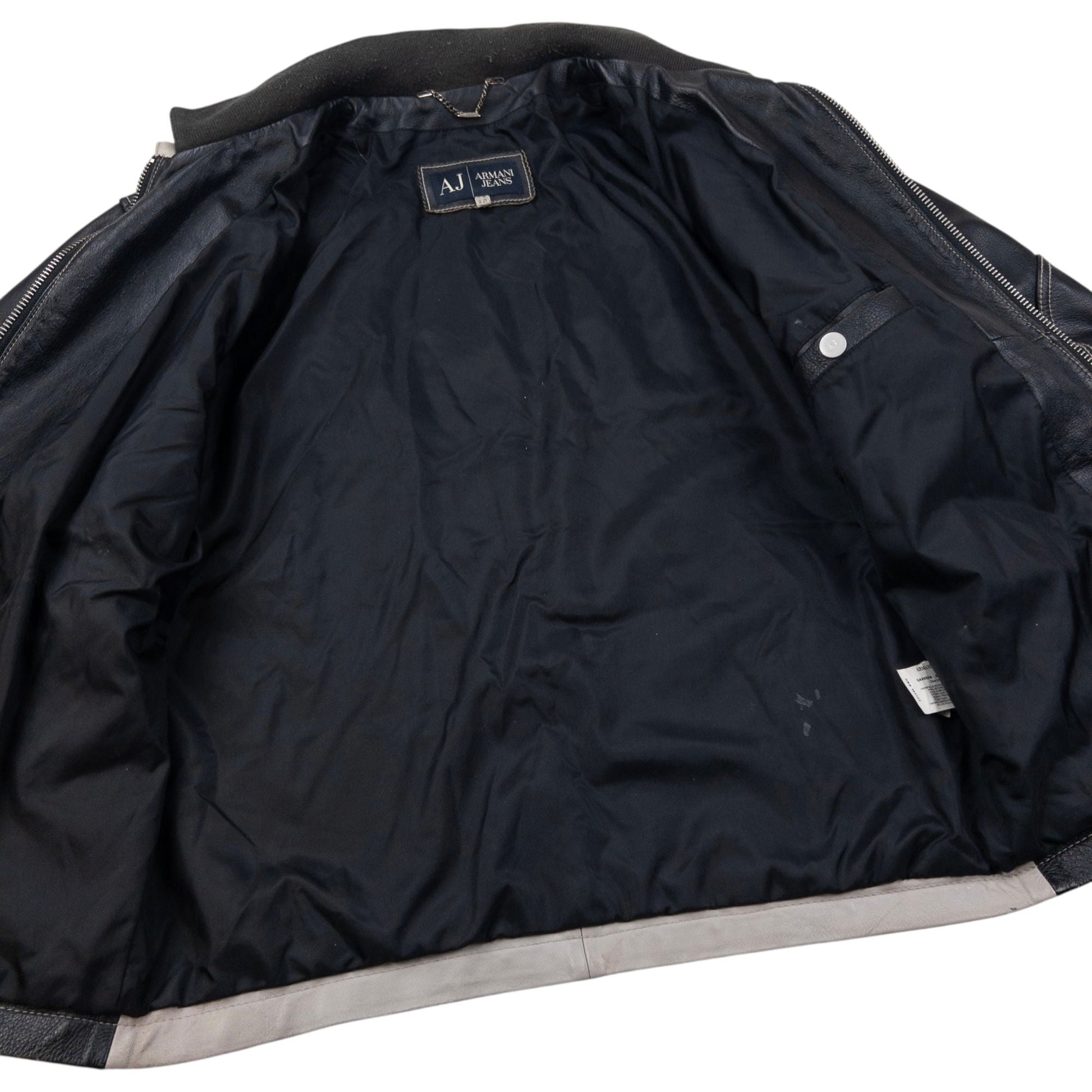 Vintage Armani Jeans Embossed Leather Biker Jacket Size M
