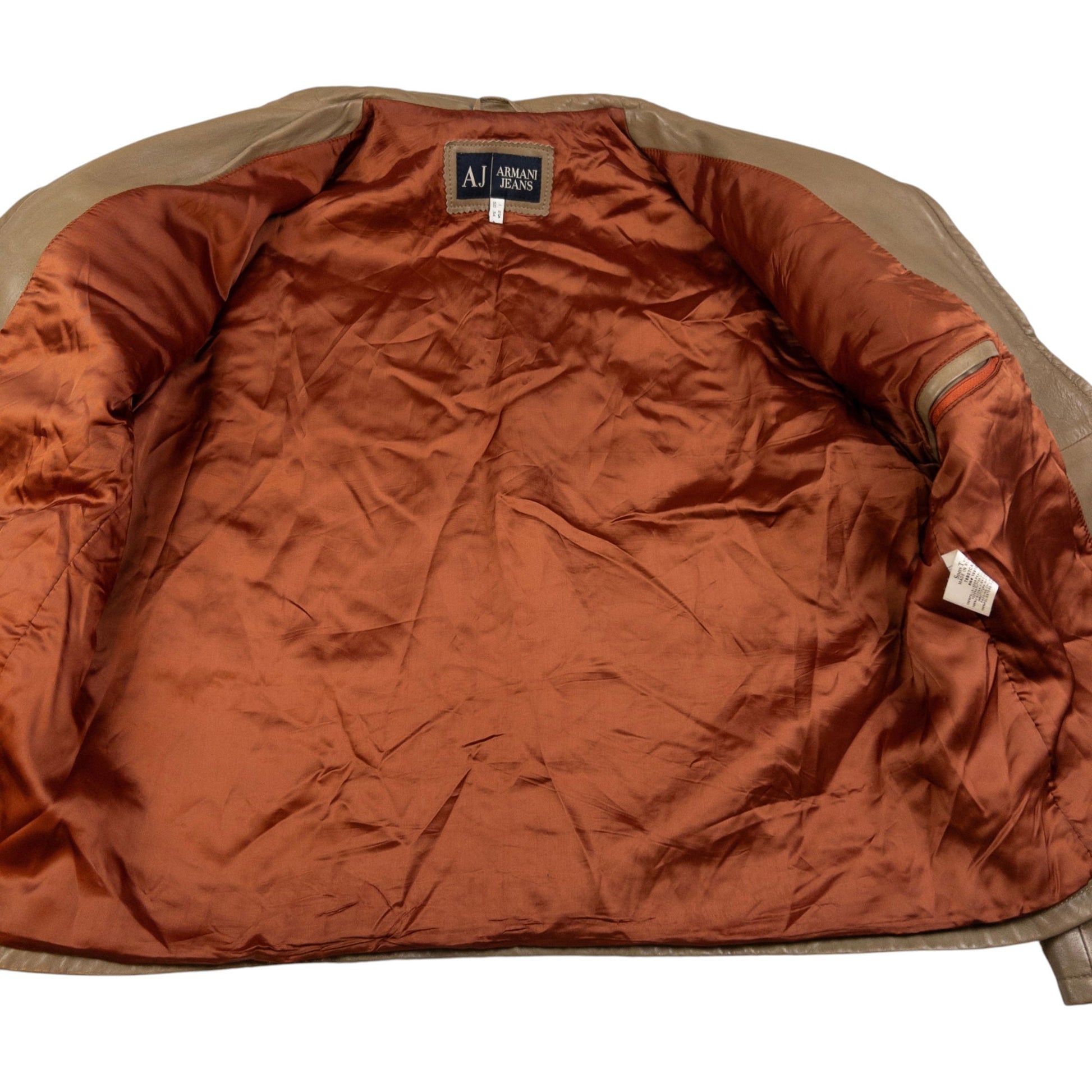 Vintage Armani Jeans Leather Biker Jacket Size M