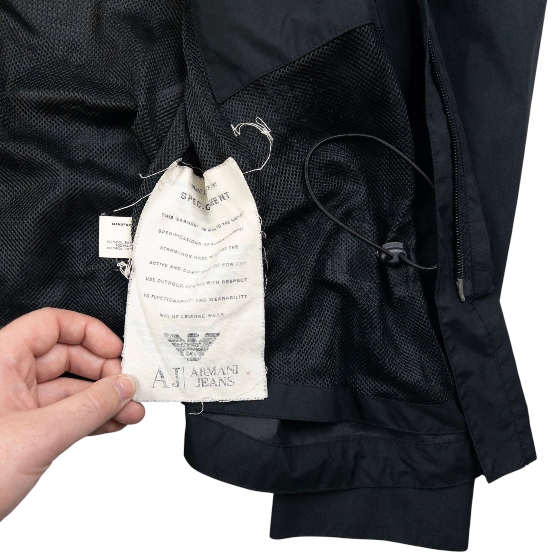 • Other info: Black colour, lightweight feel, hidden hood collar, adjustable elastic, missing zip and general wear as shown