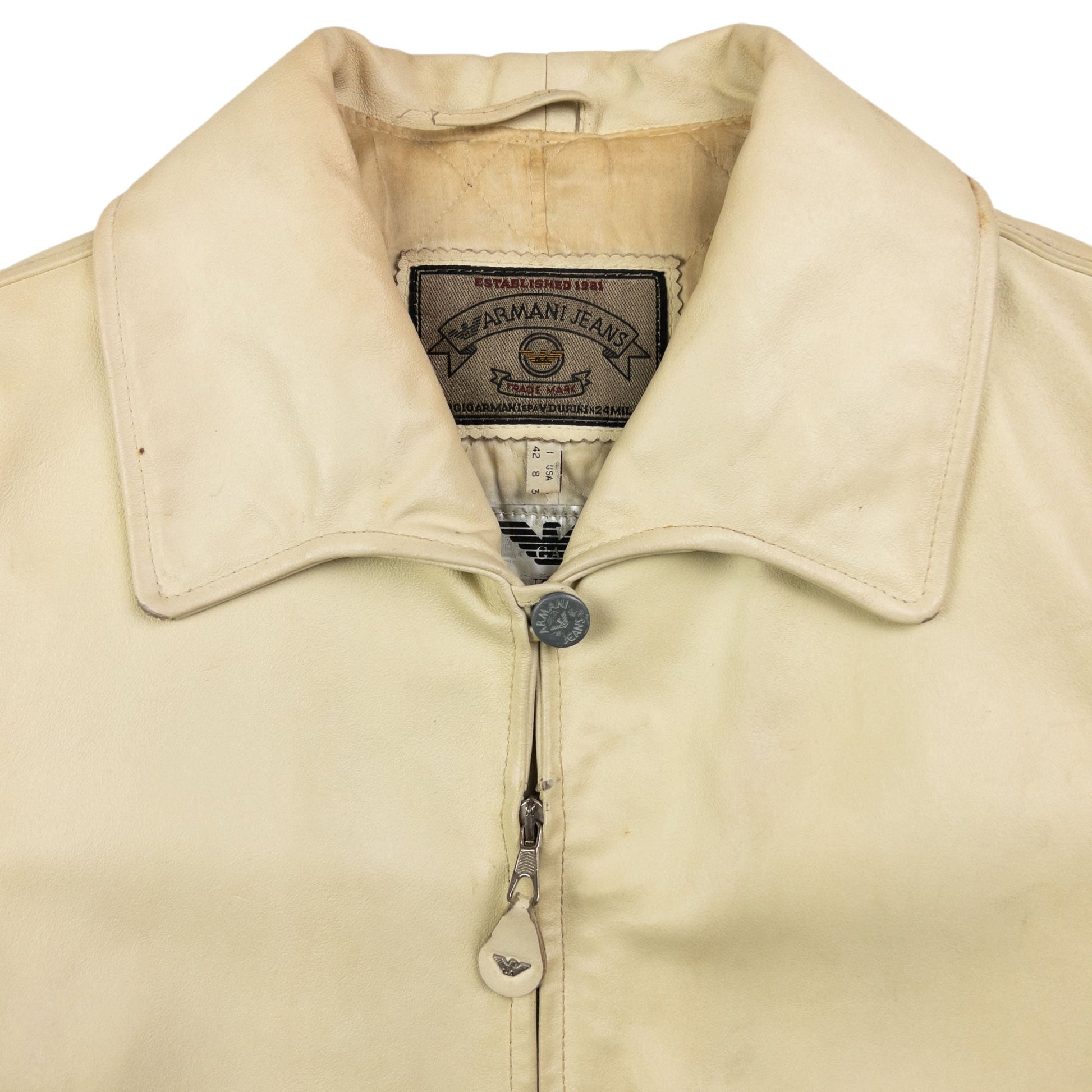 Vintage Armani Jeans Zip Up Leather Jacket Womens Size S