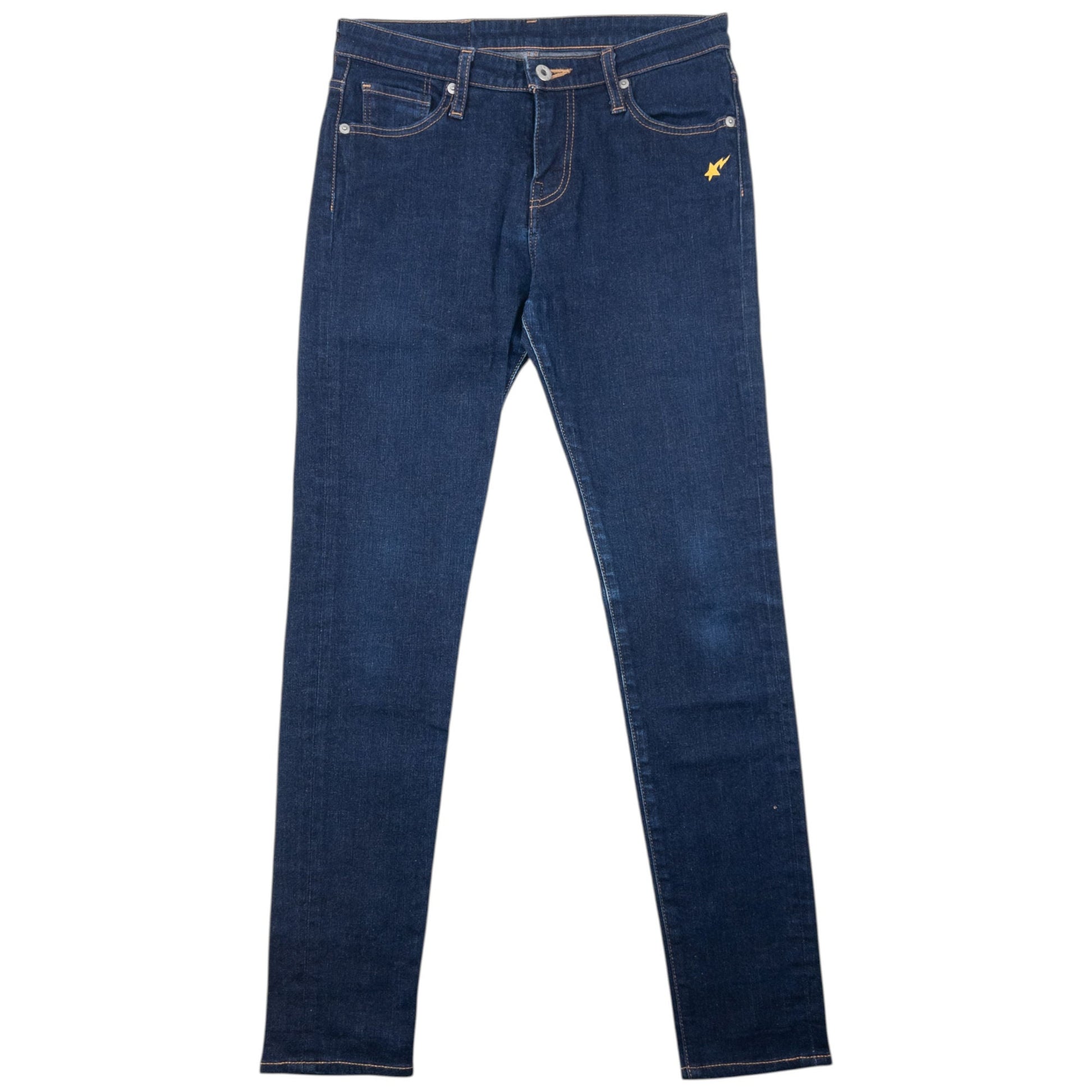 • Other info: Navy colour, yellow embroidered ape logo and star detail, skinny leg style, embossed fastenings, minor general wear as seen