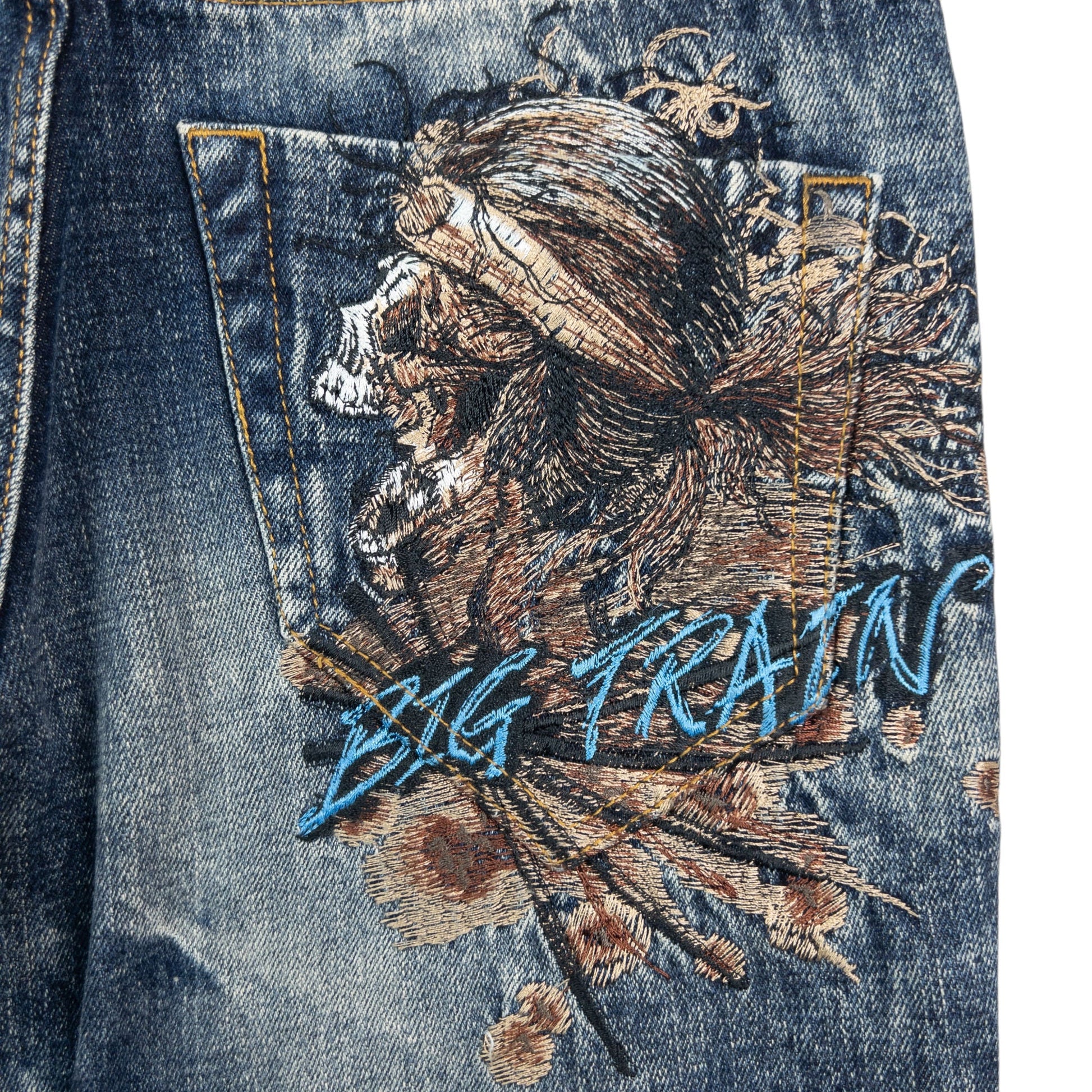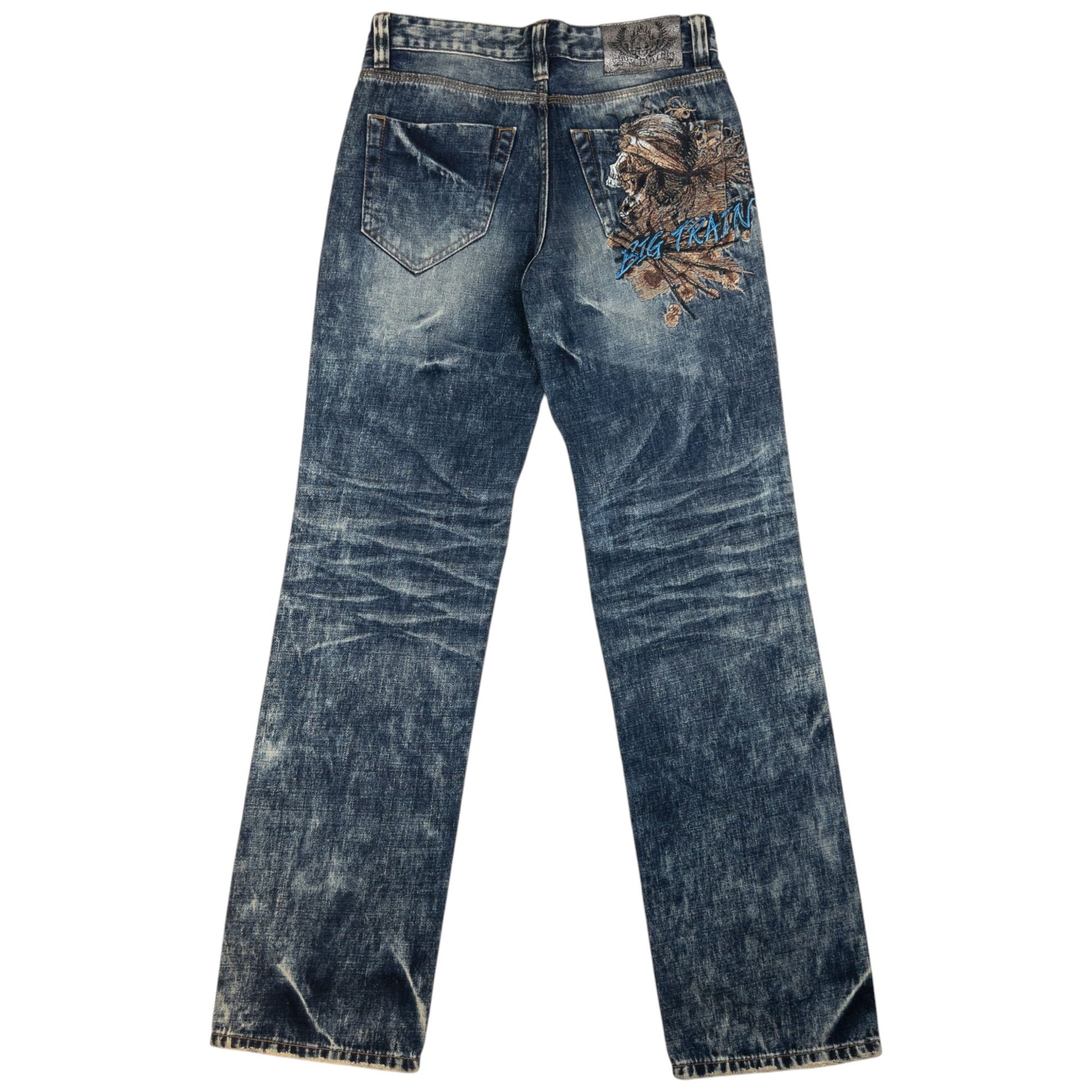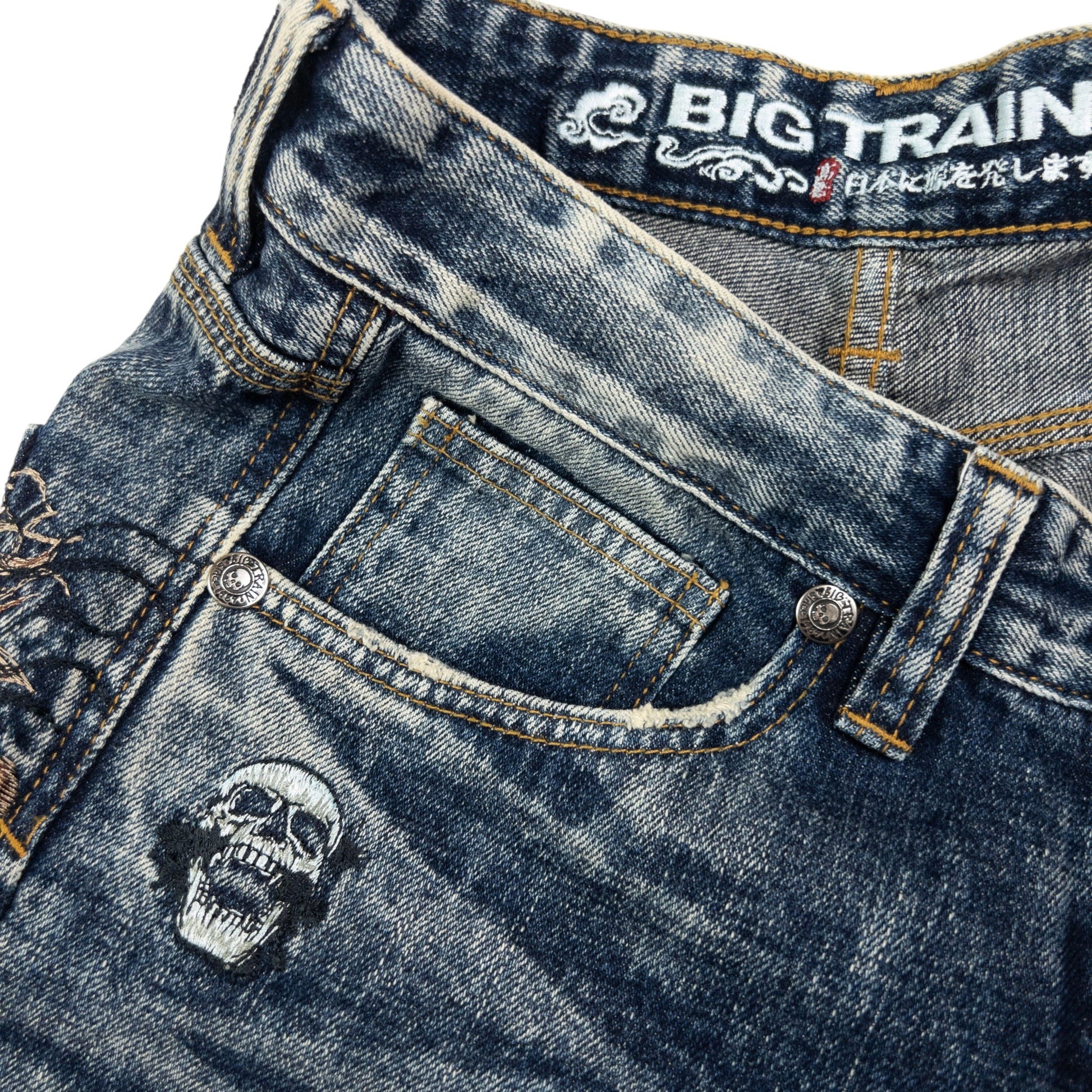 Vintage Big Train Embroidered Pirate Skull Japanese Denim Jeans Size W30
