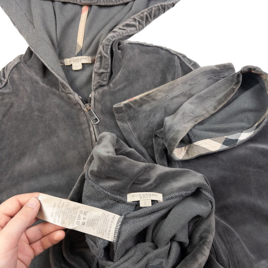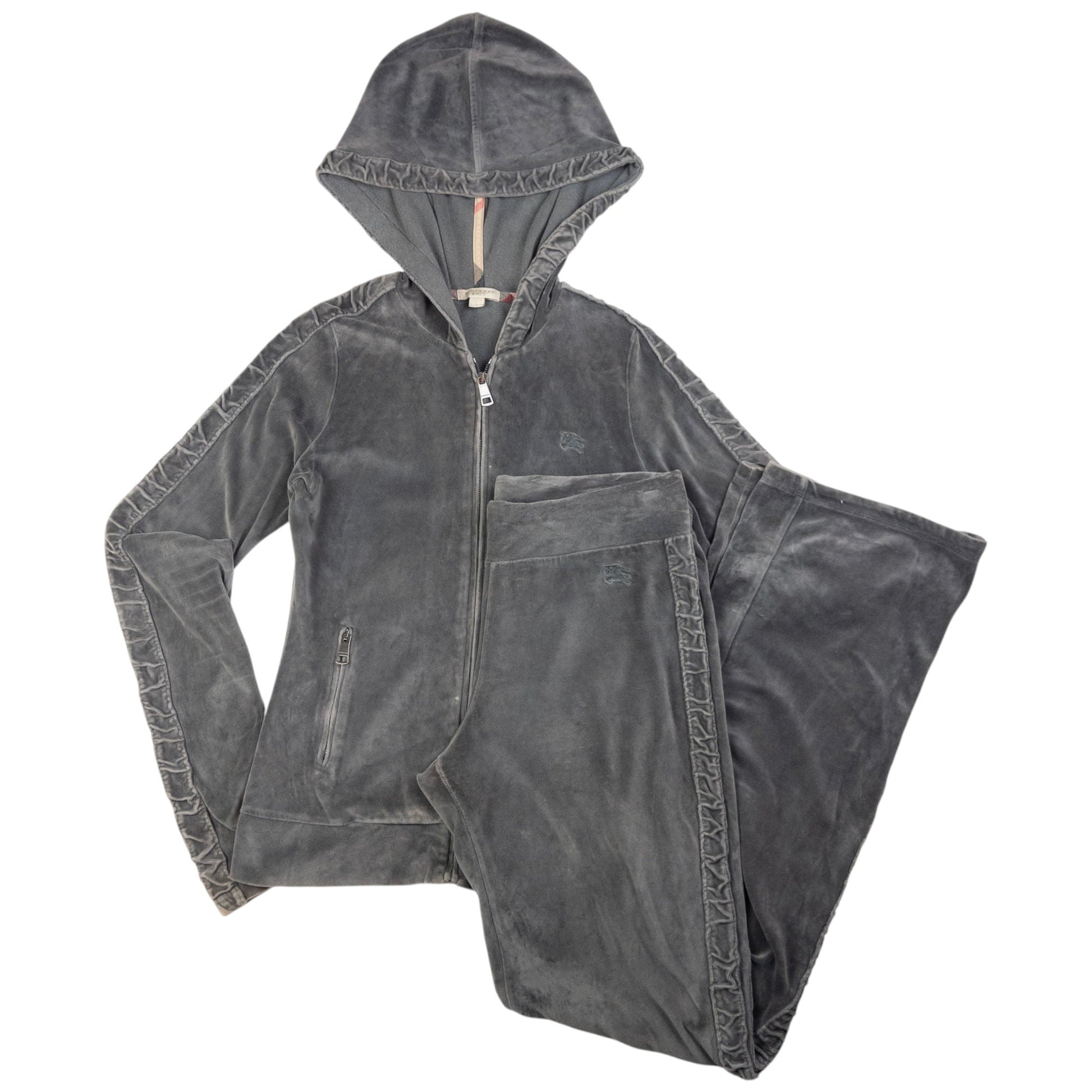 Vintage Burberry Ruched Velour Zip Up Hoodie & Joggers Set Womens Size S