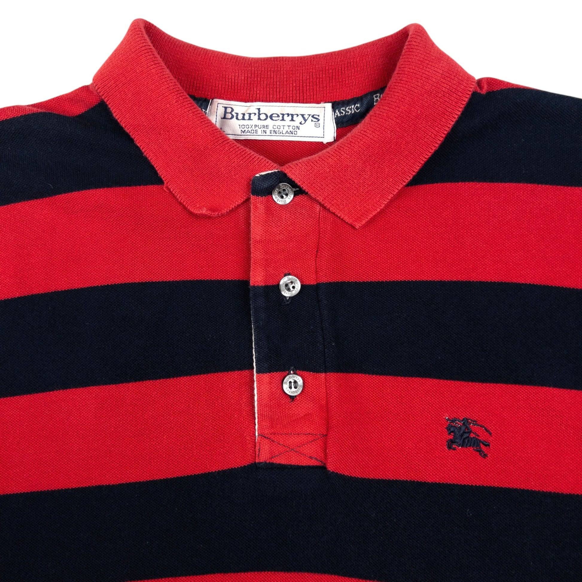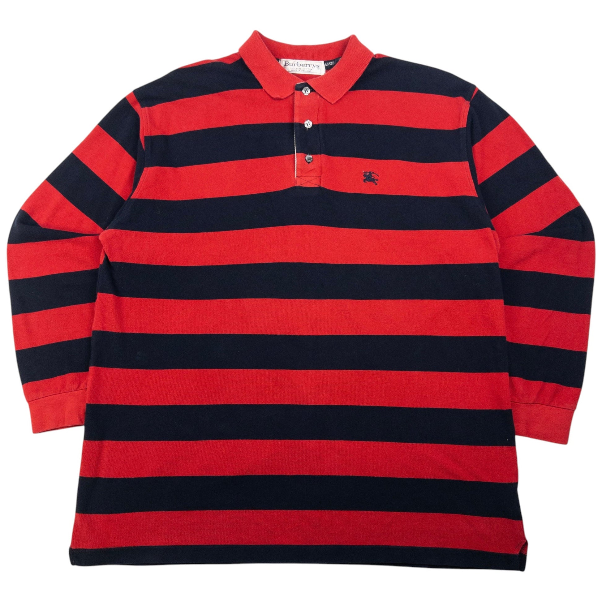 Vintage Burberry Striped Long Sleeve Polo Shirt Size L
