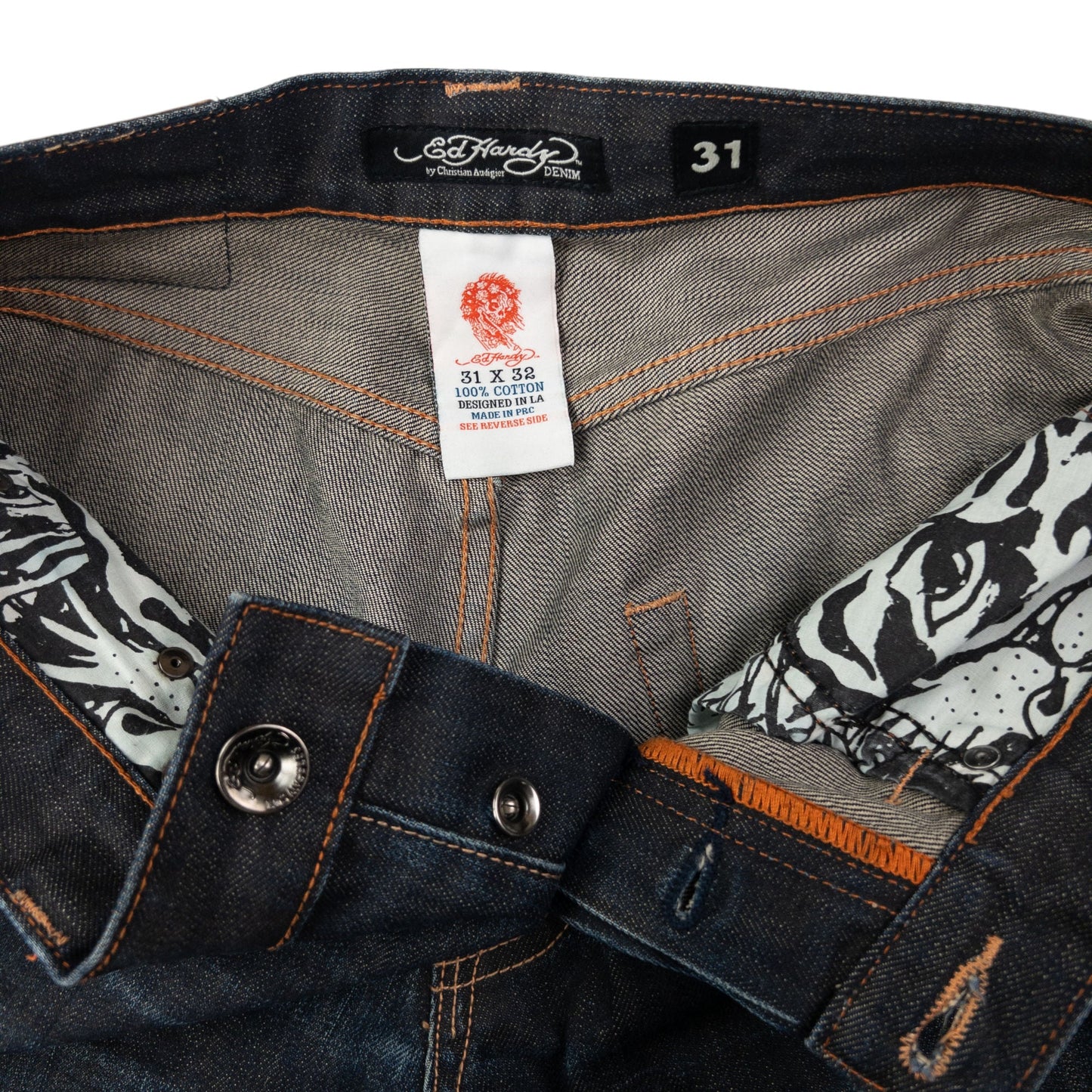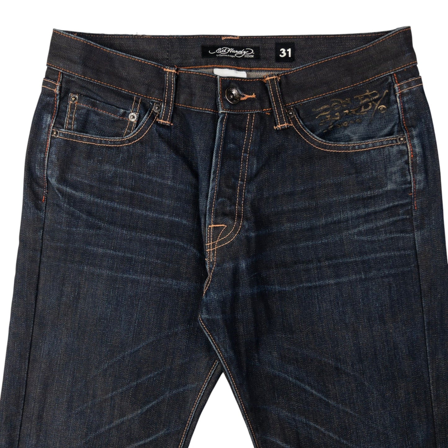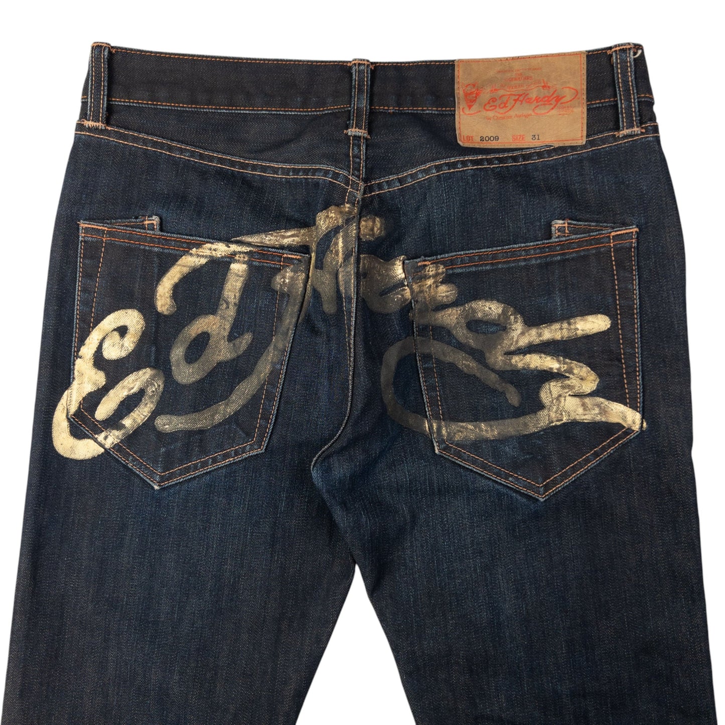 Vintage Ed Hardy Gold Paint Denim Jeans Size W32