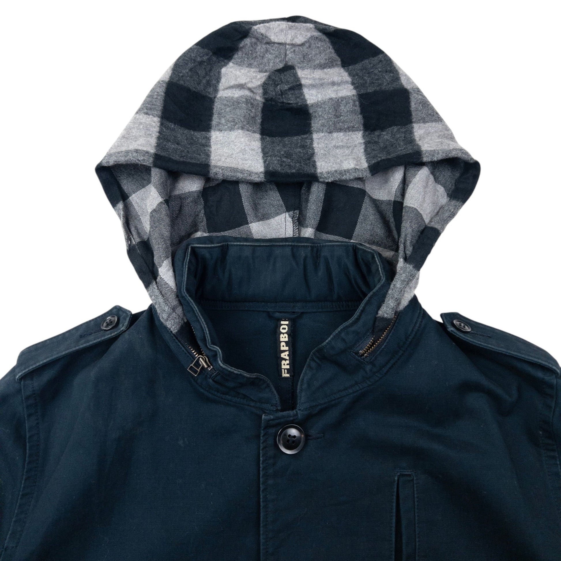 • Other info: Navy colour, grey checkered hood, adjustable drawstring, epaulette details, marks and general wear as shown