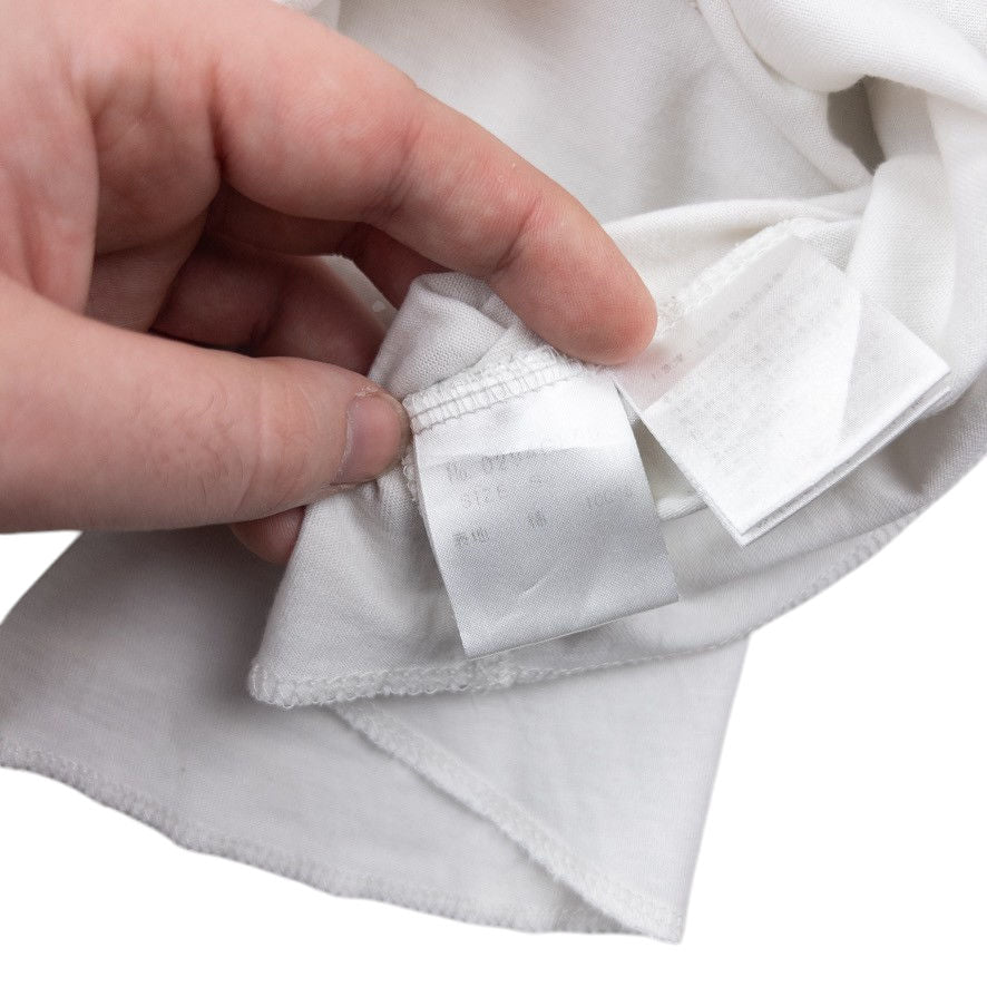 • Other info: White colour, black contrast raglan sleeve, red text graphic, front and back designs, minor general wear as shown