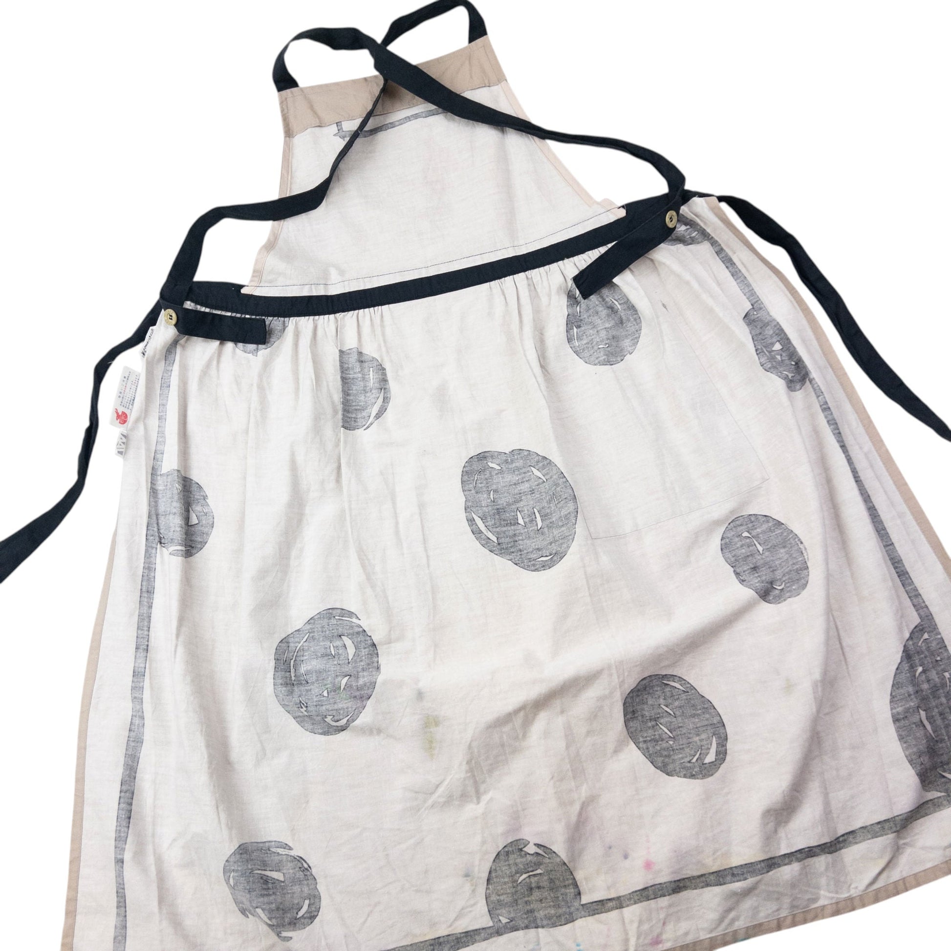• Other info: Beige colour, black contrast colour, adjustable button tie-back design, doodle spot pattern, some marks as shown