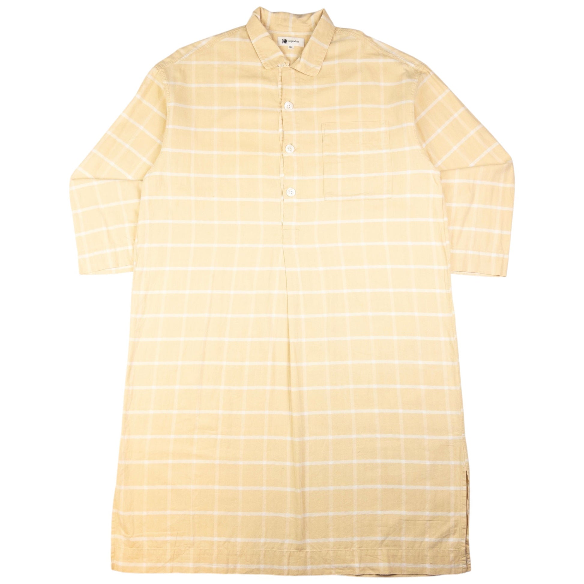 • Other info: Cream colour, white checkered grid pattern, quarter button collar, longline shirt-dress style, minor general wear as shown