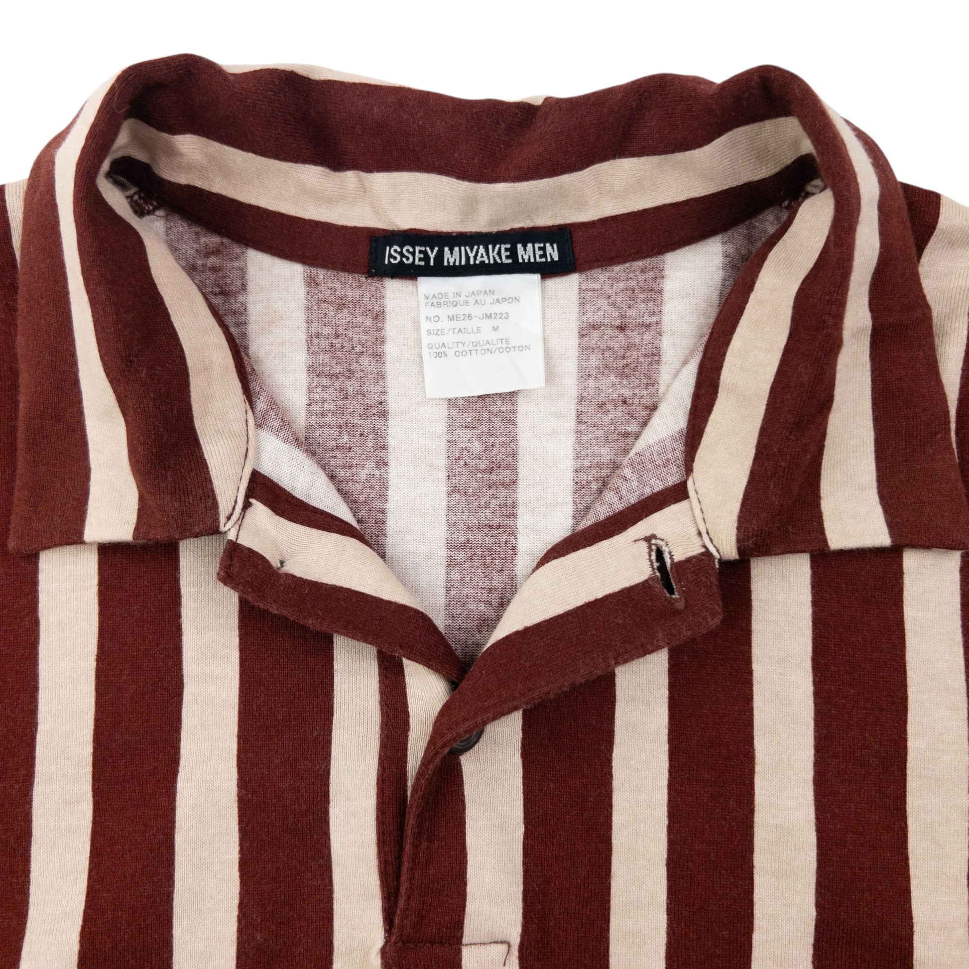 Vintage 2000s Issey Miyake MEN Striped Polo Shirt Size M | Medium, Brown