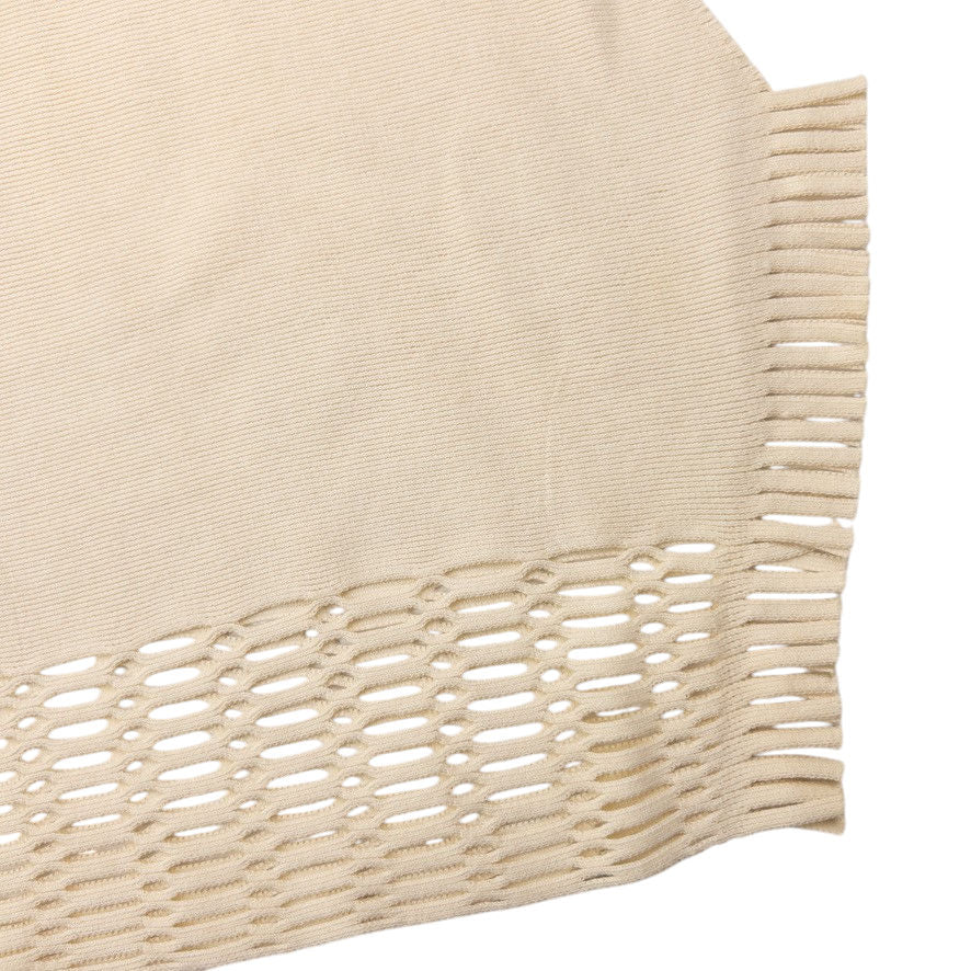 • Other info: Cream colour, lattice cut-out fringe trim, 26-30in stretch waist, 42in hip.