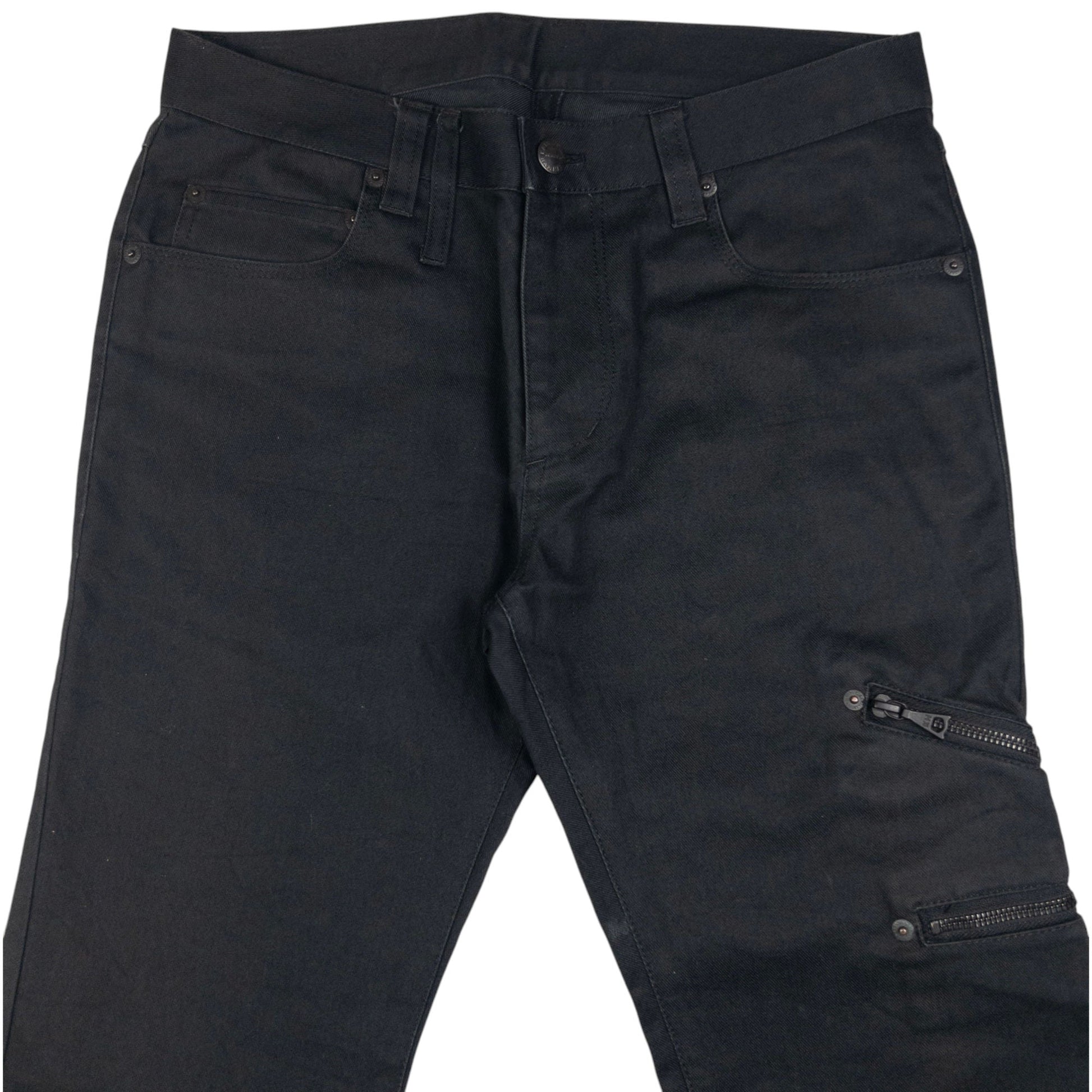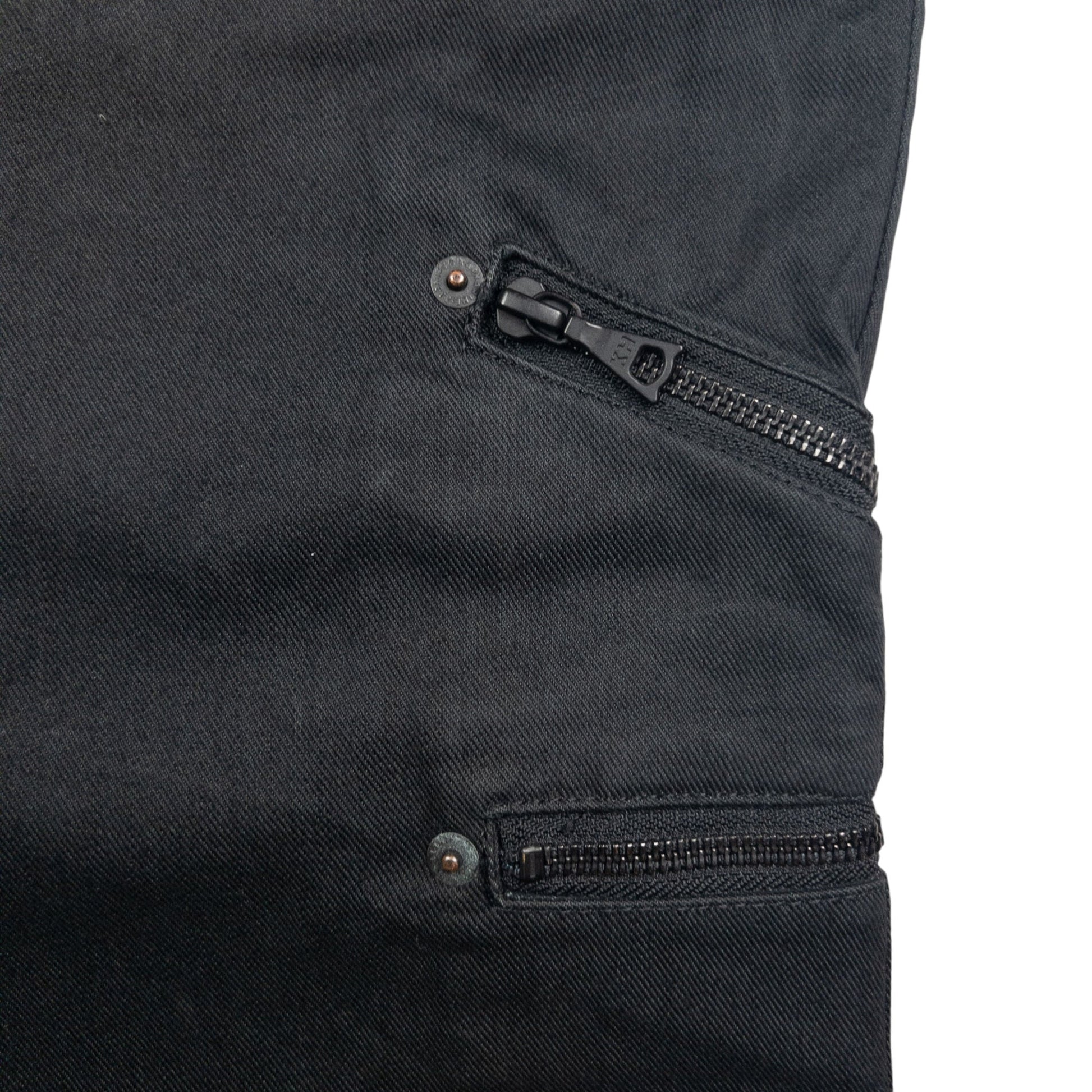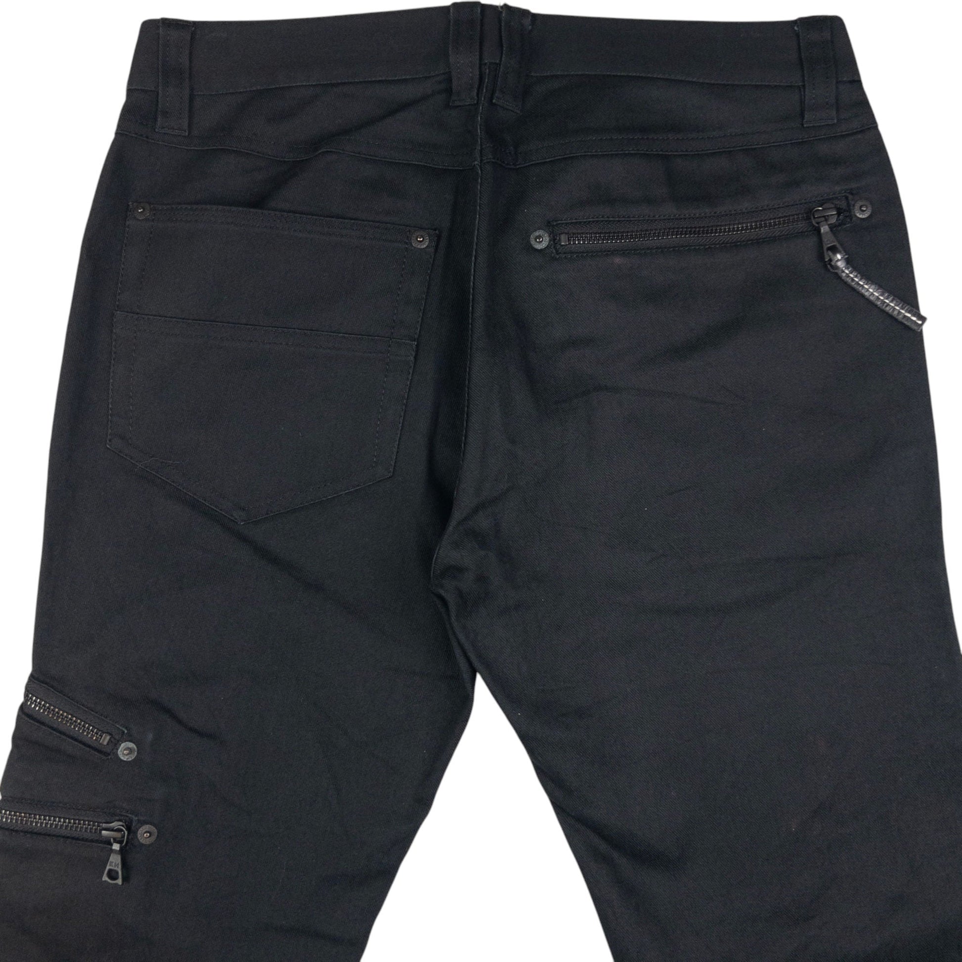 • Other info: Black colour, zip pocket details, embossed fastenings, flared leg style