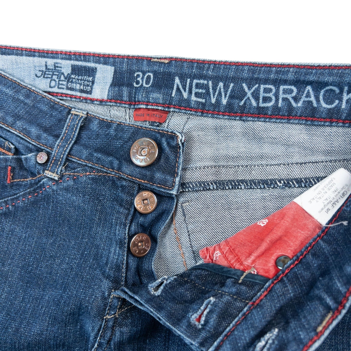• Other info: Navy colour, skinny leg shape, contrast red stitch details, embossed bronze buttons