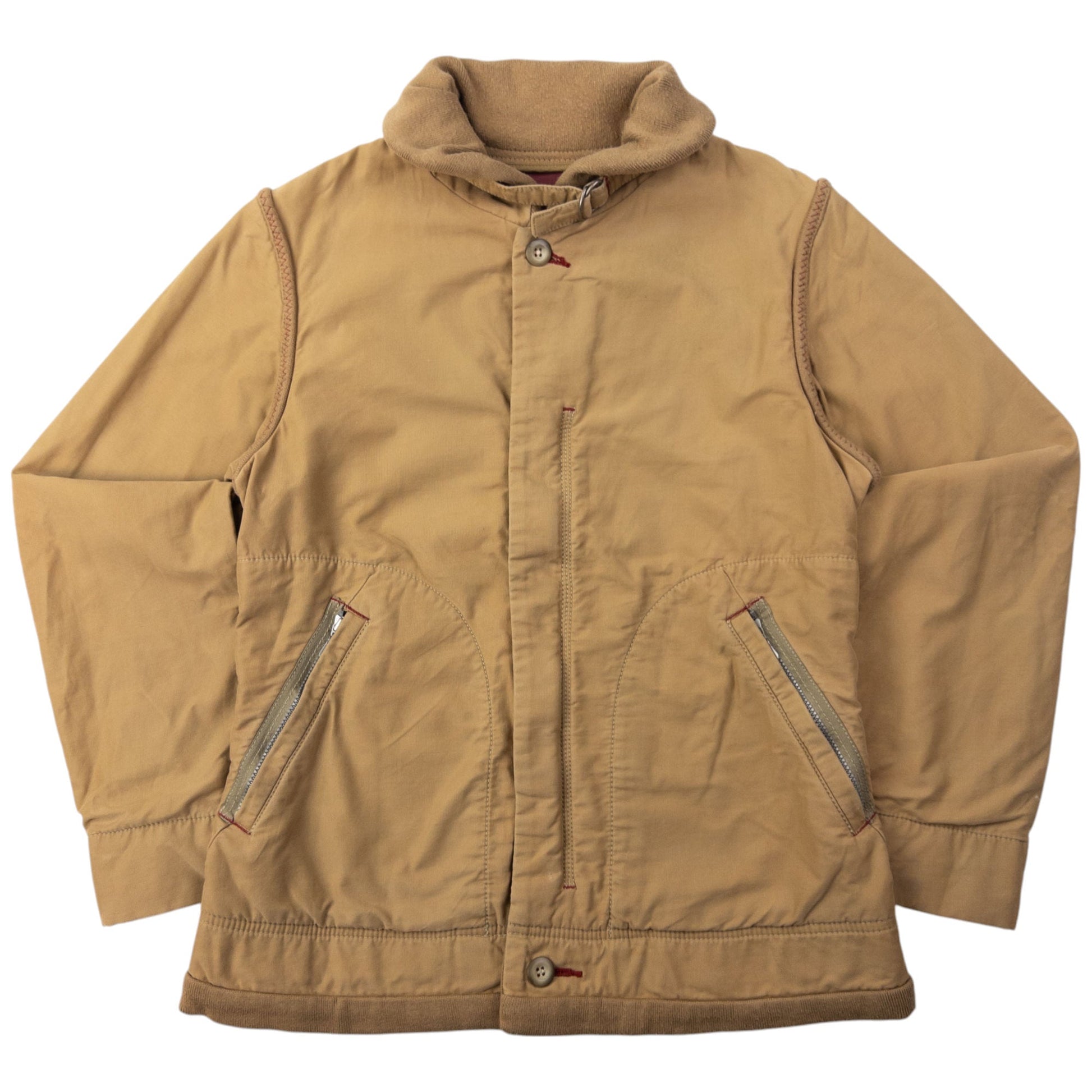 • Other info: Beige colour, embossed fastenings, sweatshirt-style collar with belt fastening, some discoloured marks and wear as shown