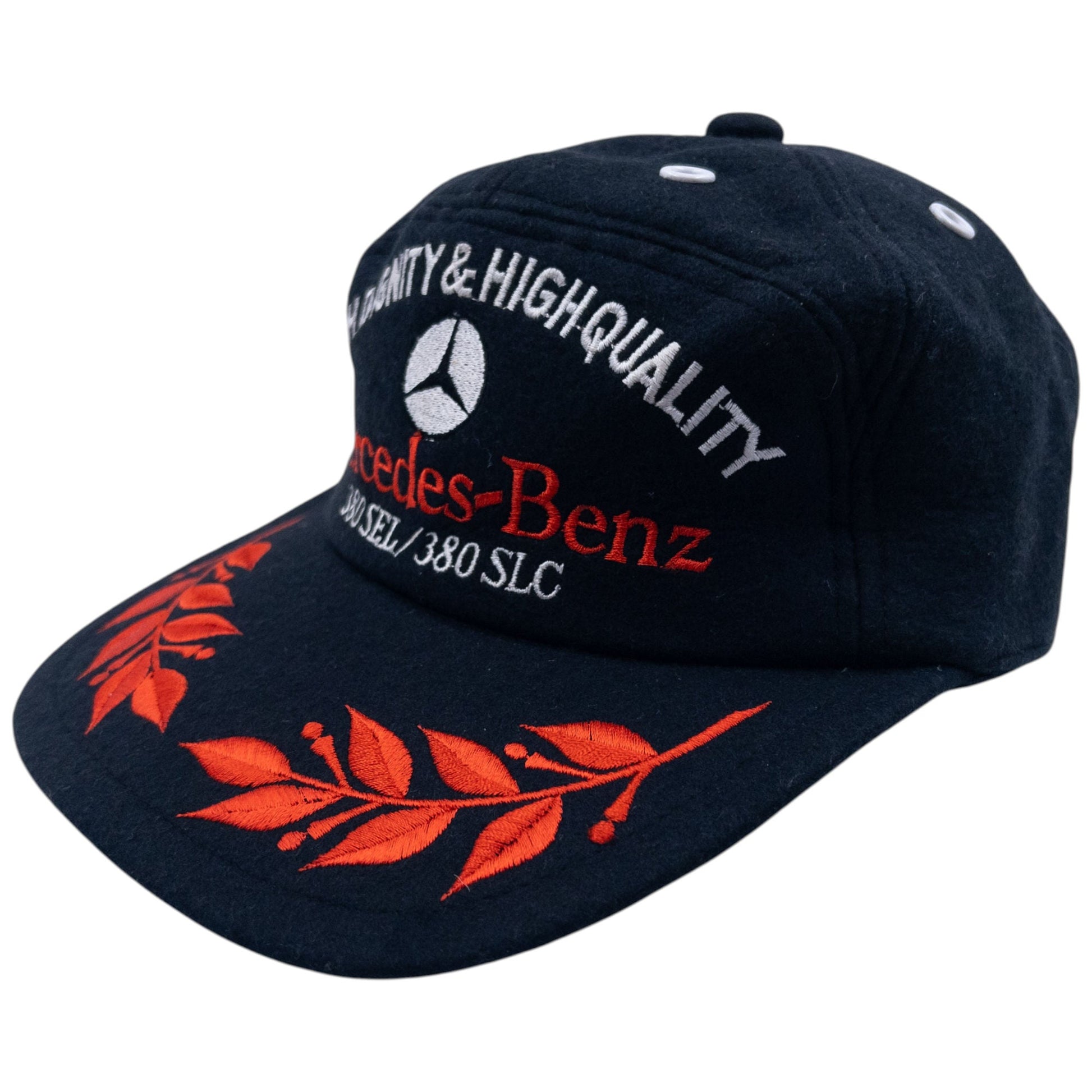 Vintage 80s Mercedes Benz Embroidered Wool Hat Size L | O/S, Black