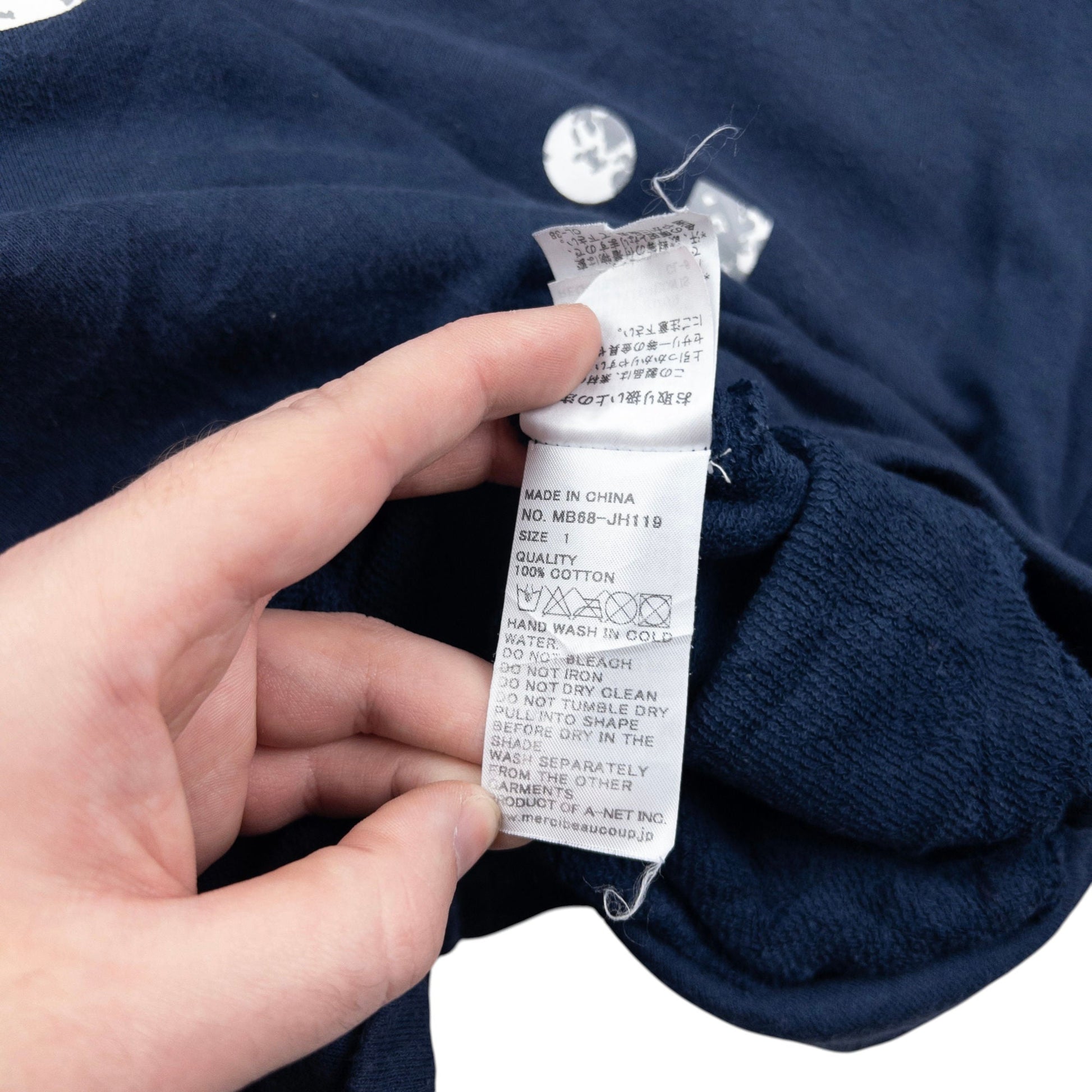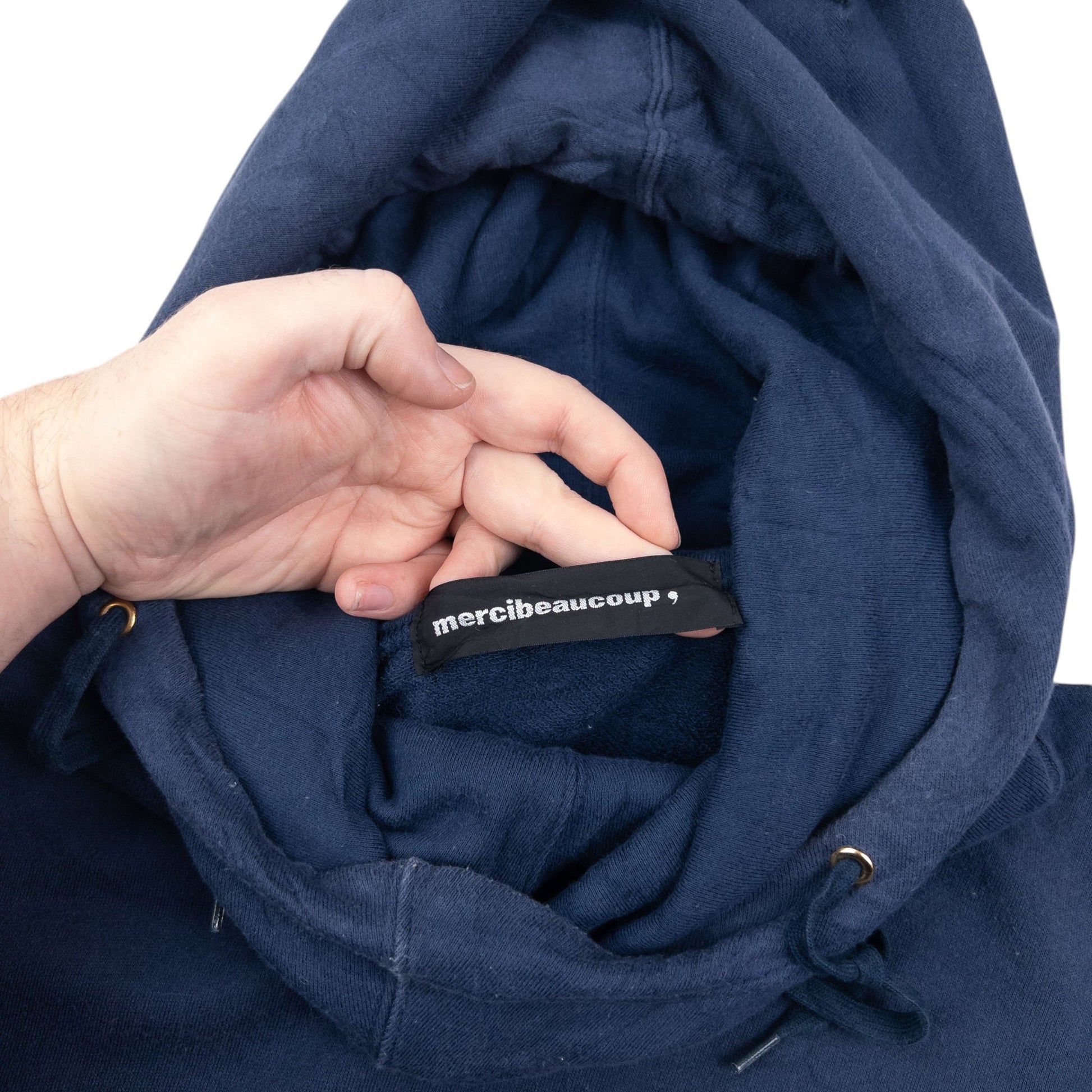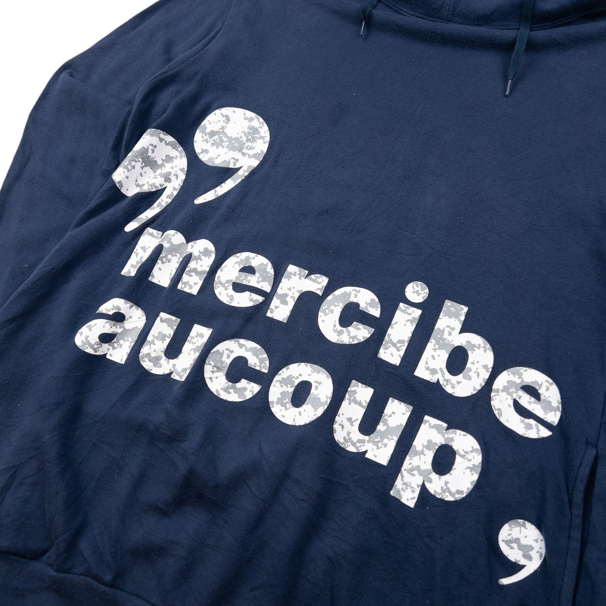 • Other info: Navy colour, white text graphic, mini ear hood detail, general wear as seen