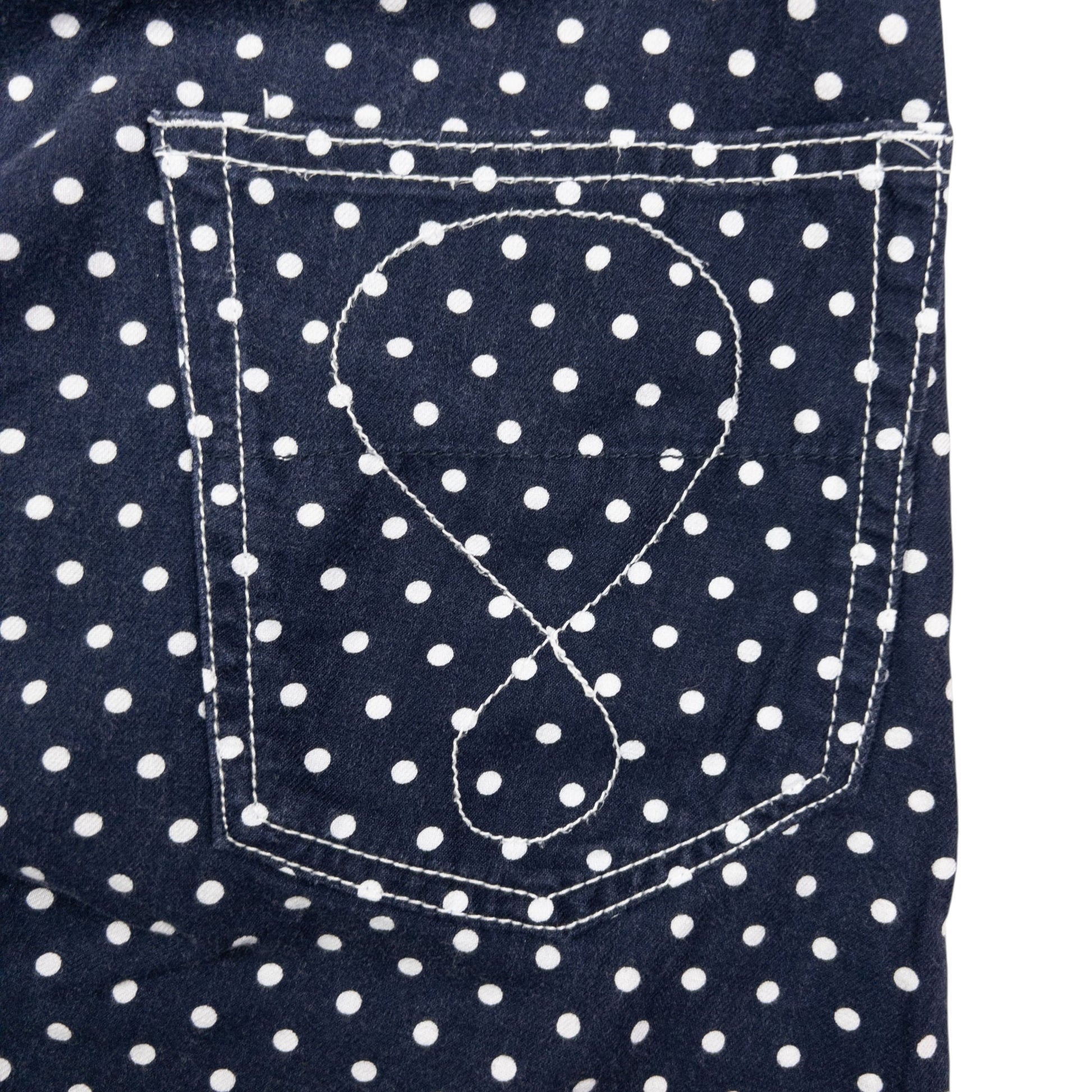 • Other info: Navy colour, white polka dot pattern, high-waisted/drop-crotch design, minor general wear as seen