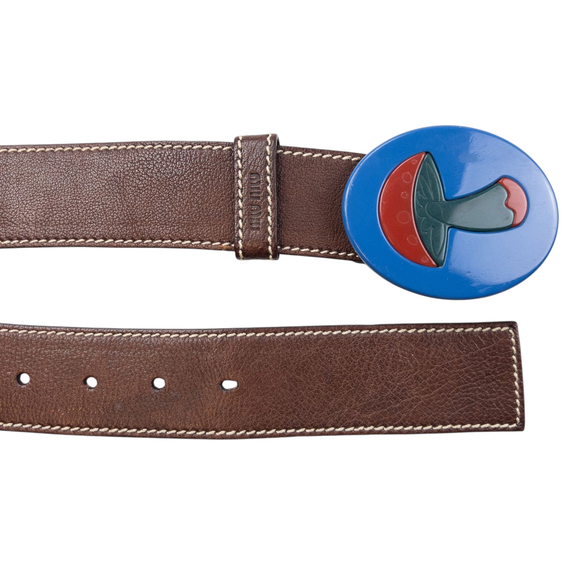 Vintage 2005 Miu Miu Mushroom Buckle Leather Belt Size L | O/S, Brown