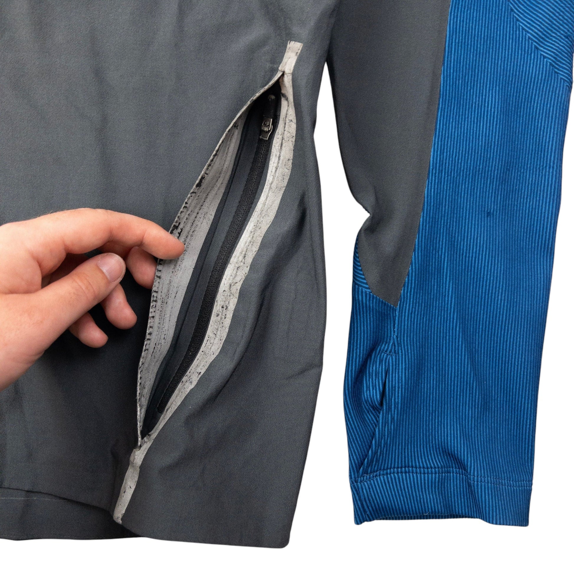 • Other info: Grey colour, blue contrast colour, stripe pattern sleeves, flash reflective detail, minor snags and wear as seen