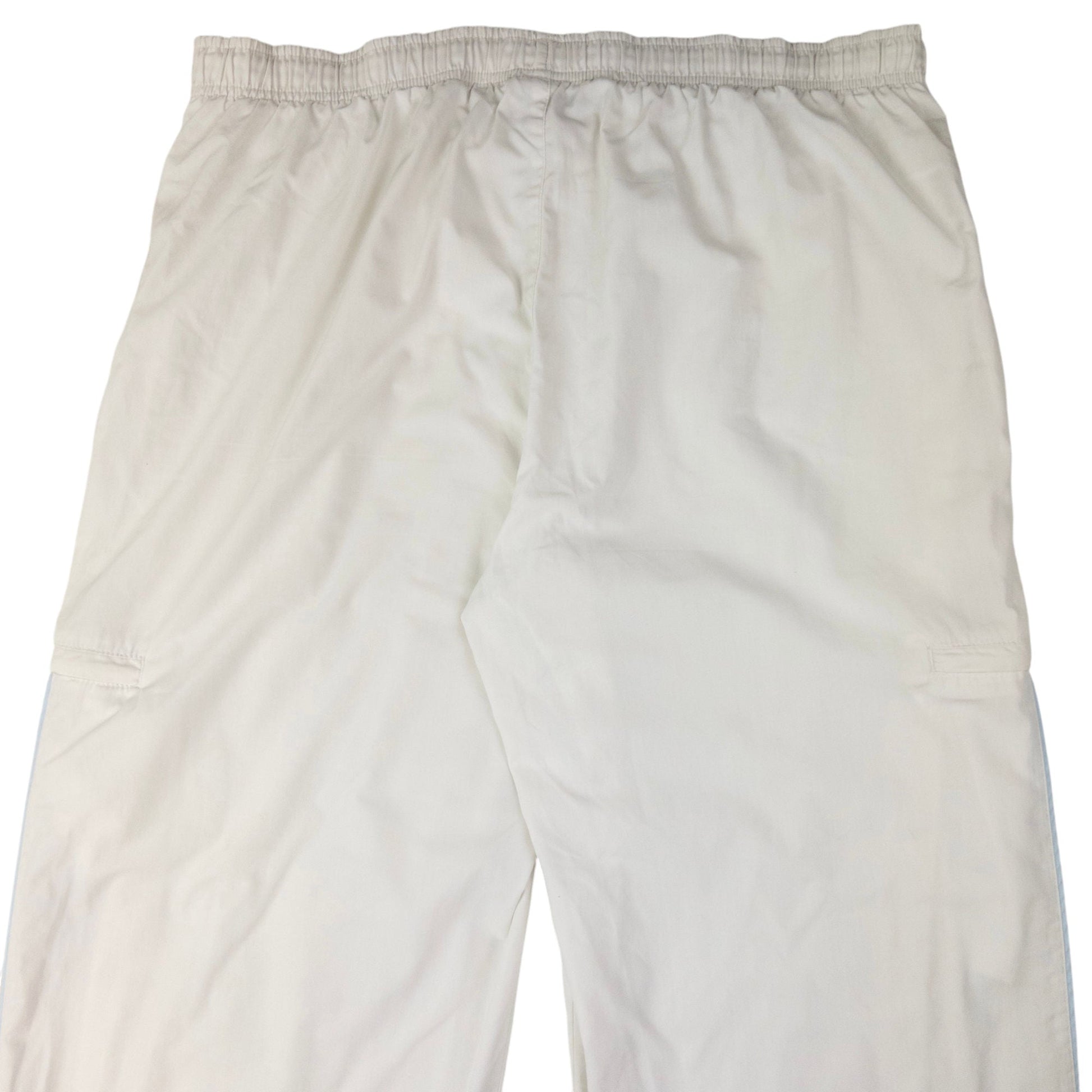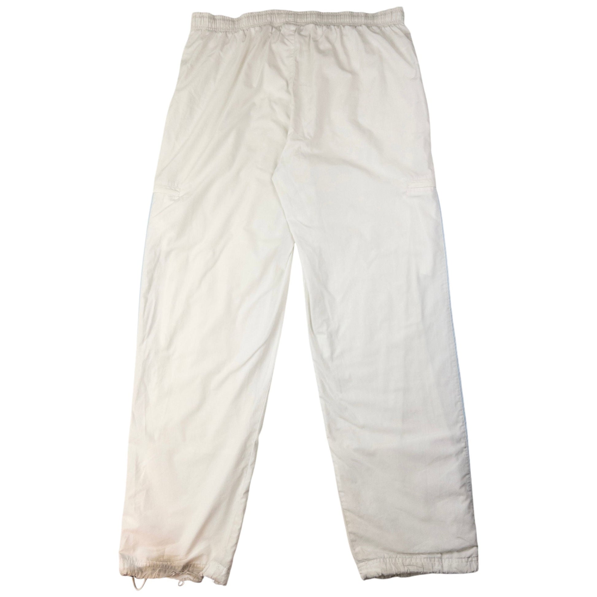 • Other info: White colour, blue accent colour, embroidered logo, 30-40in drawstring waist, elastic cuffs, some marks and signs of wear as shown
