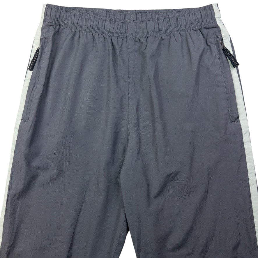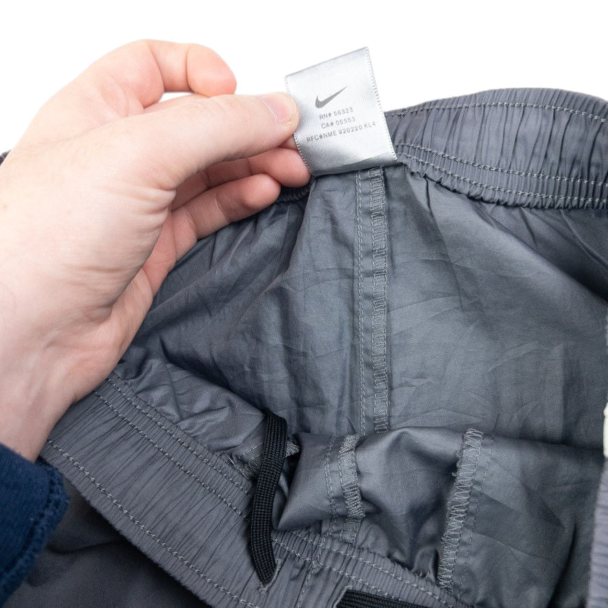 • Other info: Grey colour, green accent colour, lightweight feel, zip cuff detail, 24-33in drawstring waist, embroidered logo, minor general wear as seen