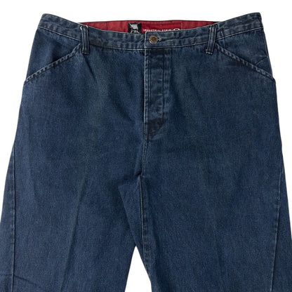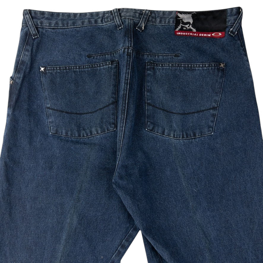 • Other info: Navy colour, skull pocket details, wide leg style, embossed fastenings.